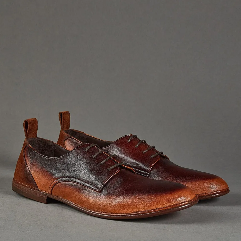 Brown Mens Derby Featuring A Washed And Brushed Buffalo Leather Upper. These Conflict For Interest Lace Up Derby Are Timeless And Feature A Robust Blake Rapid Construction.
