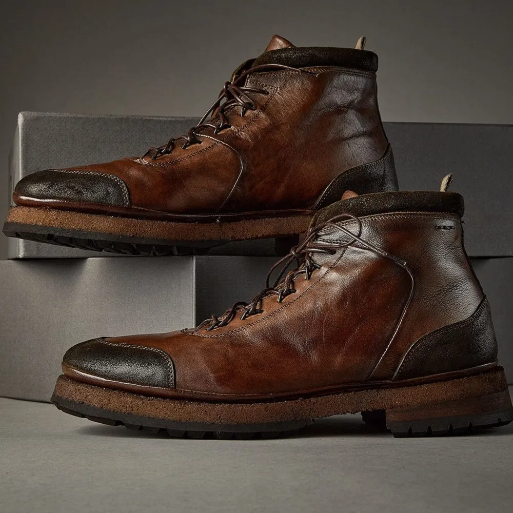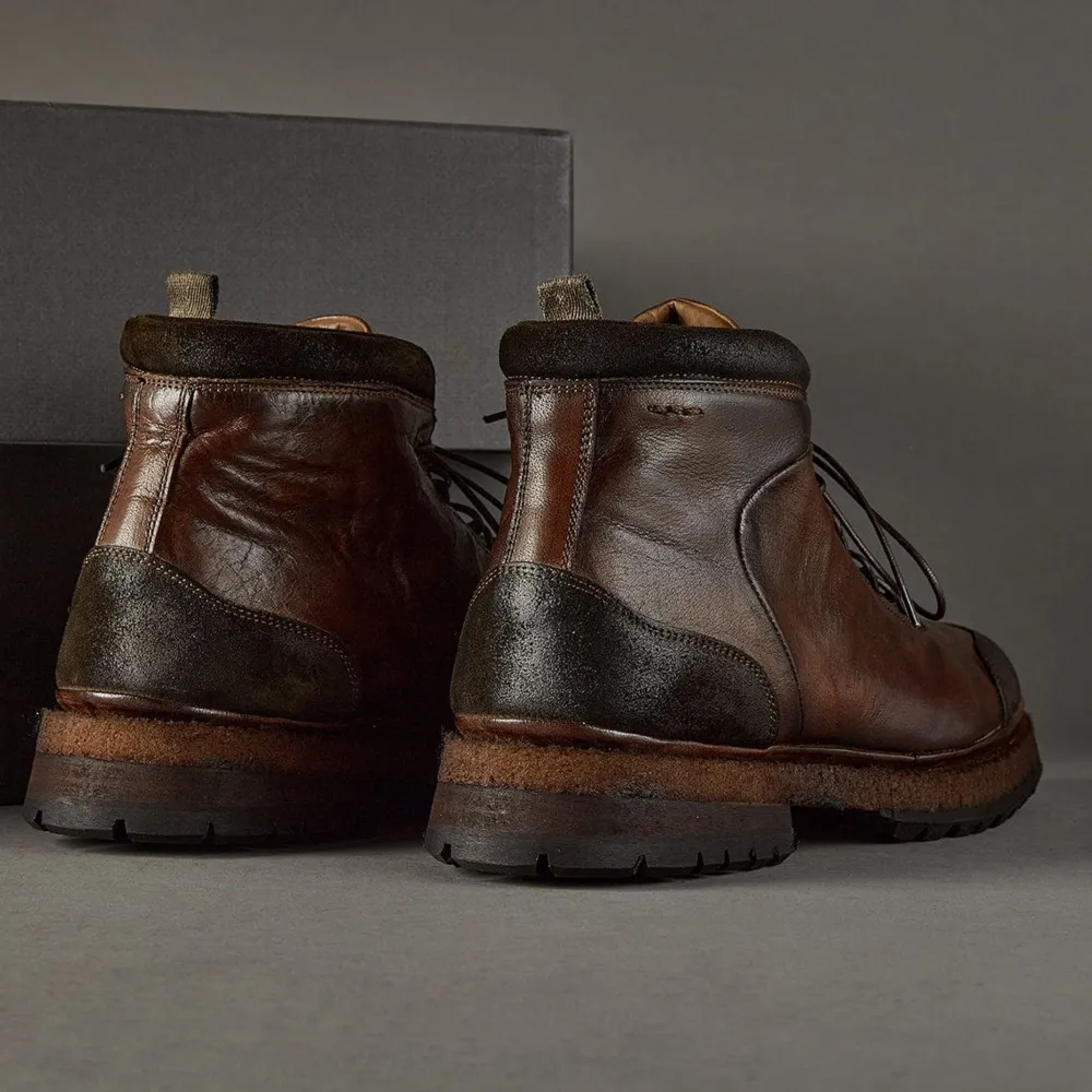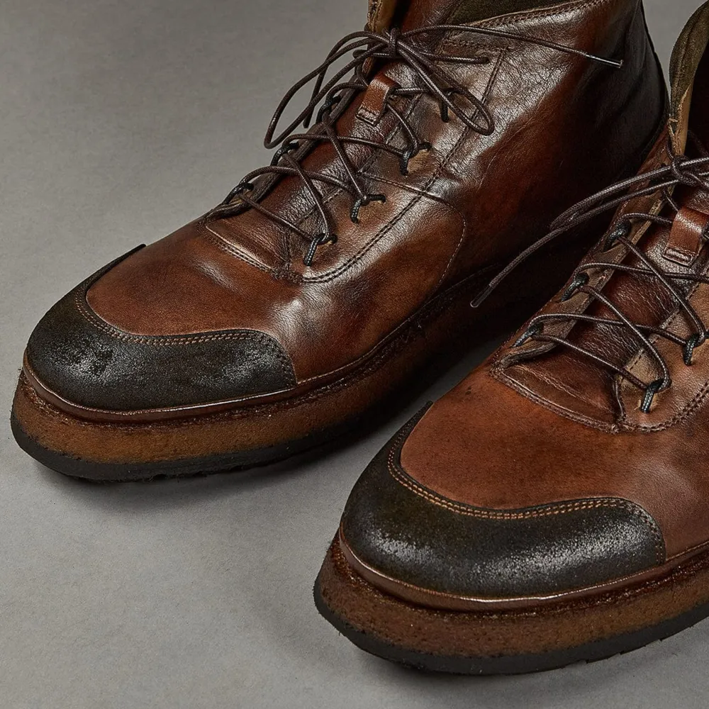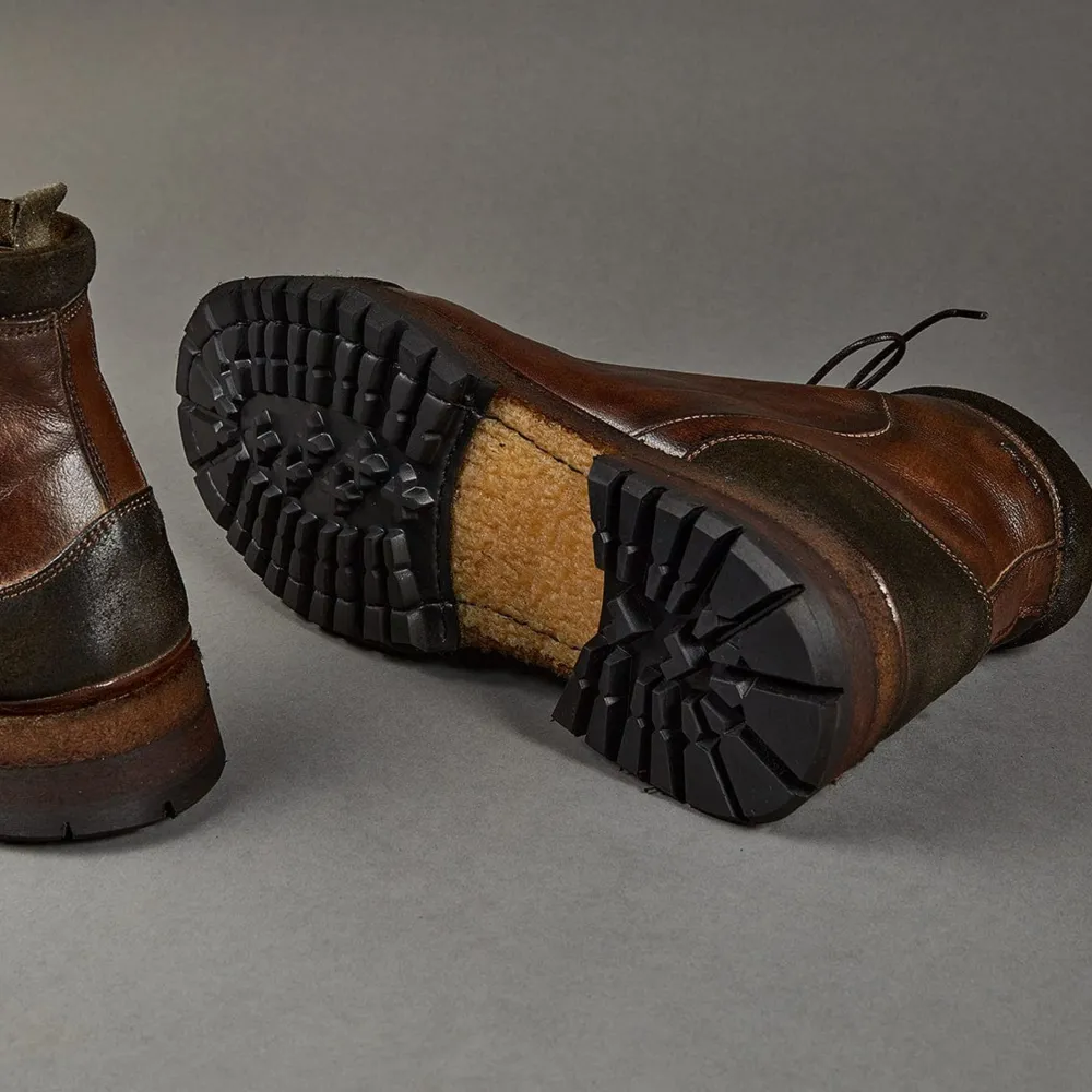 Anmkle Boot From Artisan Shoe Maker Alexander Hotto, Featuring A Rolled Detailed Trim On The Toe And Extremely Soft Washed Leather Upper Sitting On A Very Comfortable Crepe Sole. This Unique Boot Is The Ideal Transeasonal Shoe To See You Through The Warmer Months Of The Year.