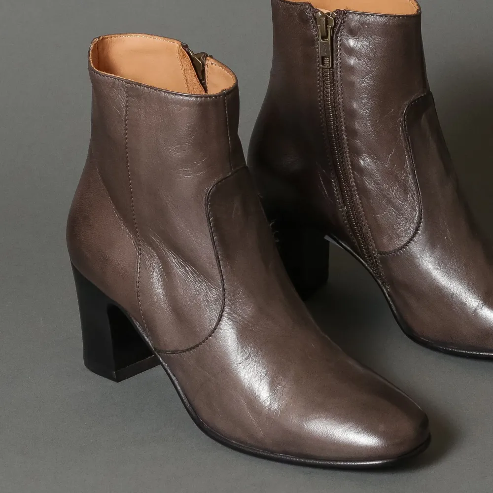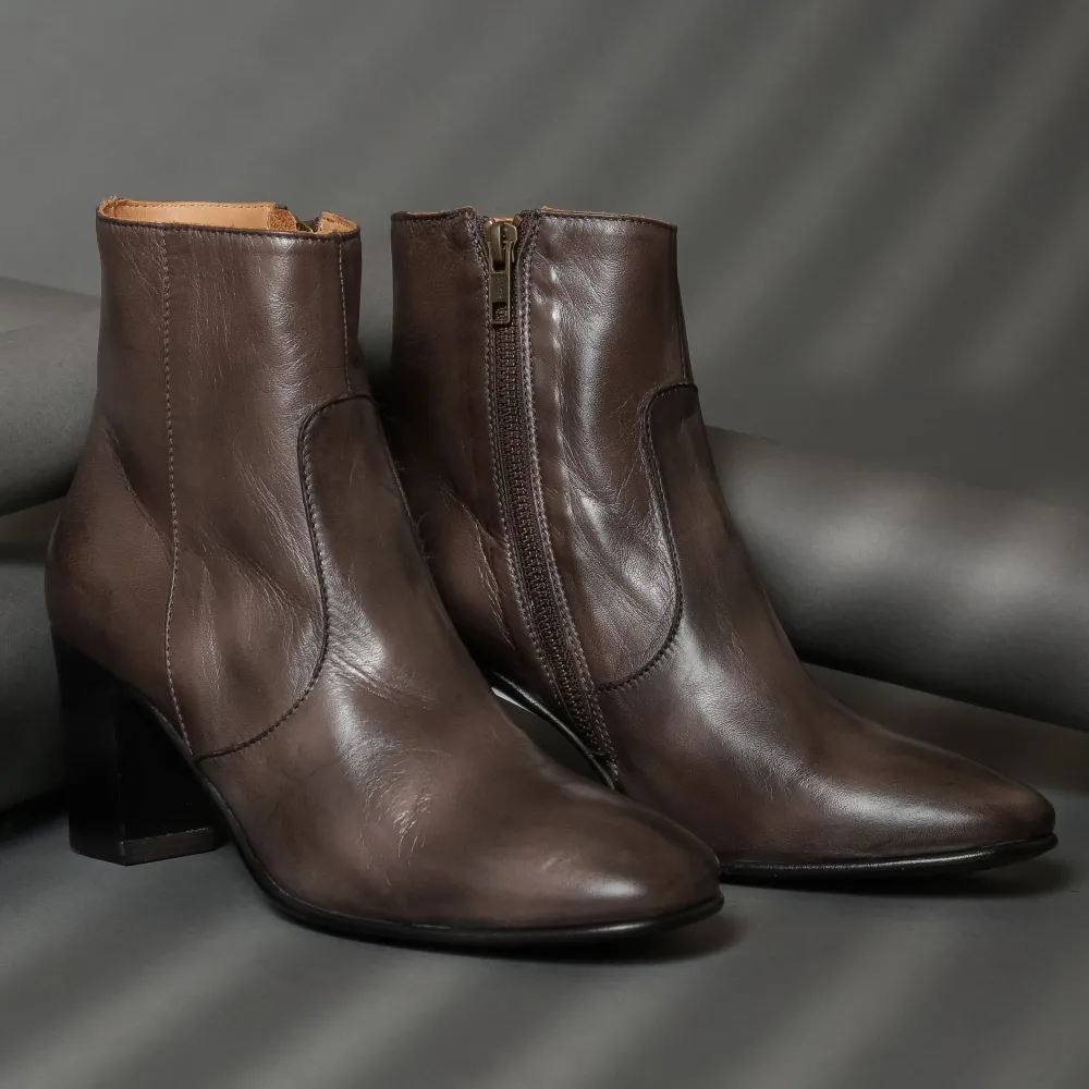 Women’S Zip Ankle Boot Featuring A Hand Patin Leather Upper Sitting On A Comfortable Sachetto Construction. A Must Have For The Colder Months Of The Year.