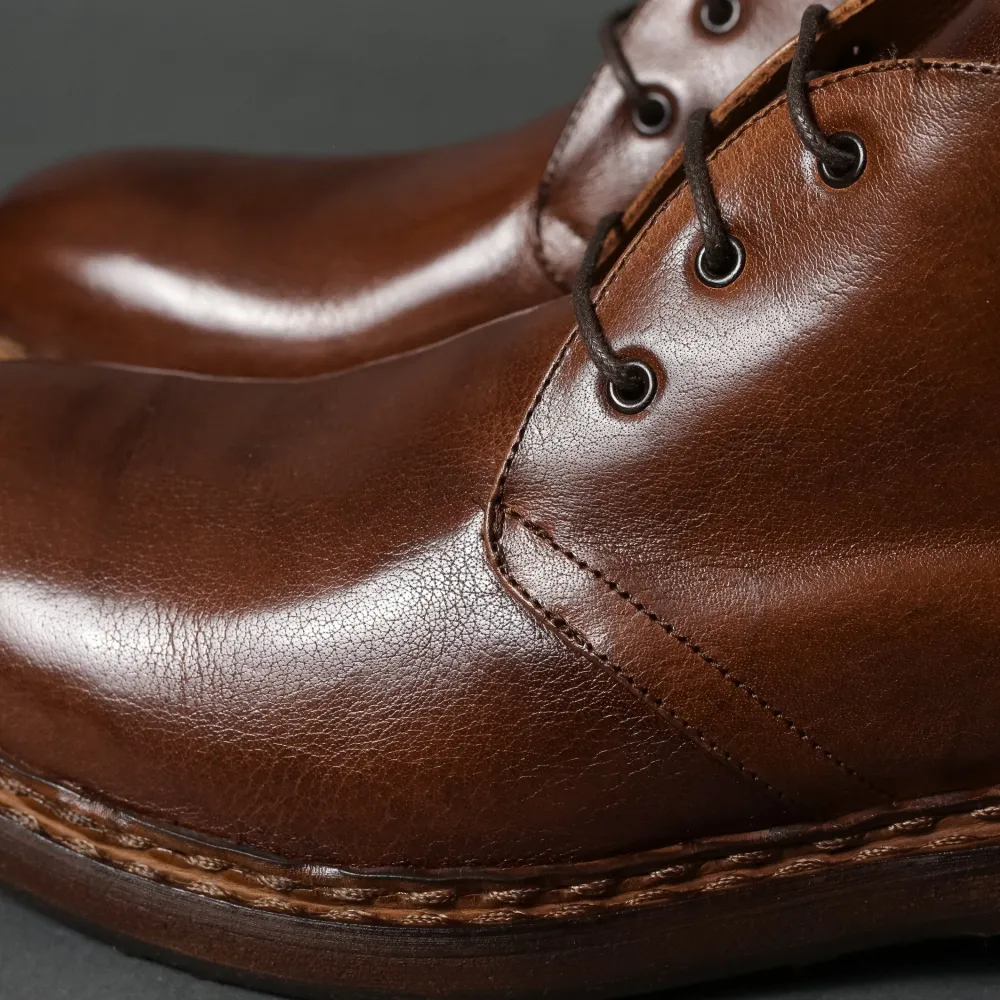 Conflict For Interest Lace Up Chukka. Handcrafted To Perfection Featuring A Washed And Brushed Leather Upper. Suitable For All Seasons And Easily Paired Back With Denim And Chinos. Limited Sizes Available.
