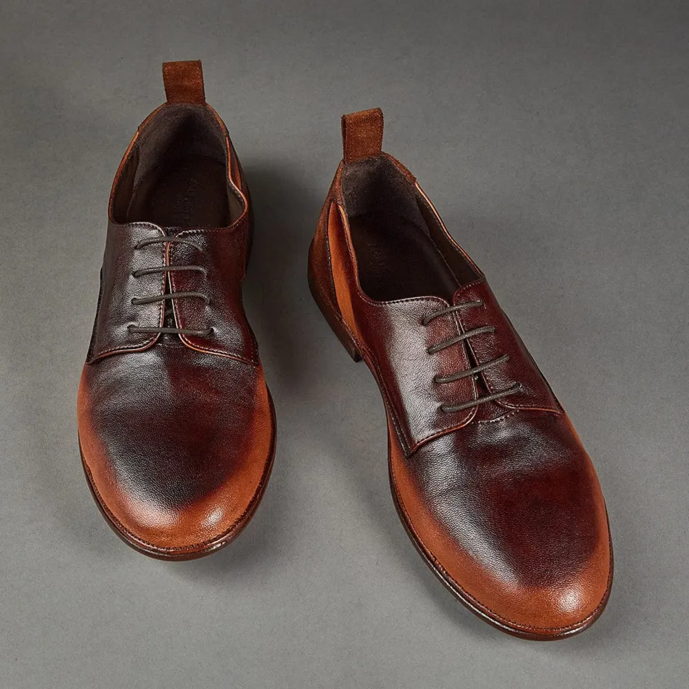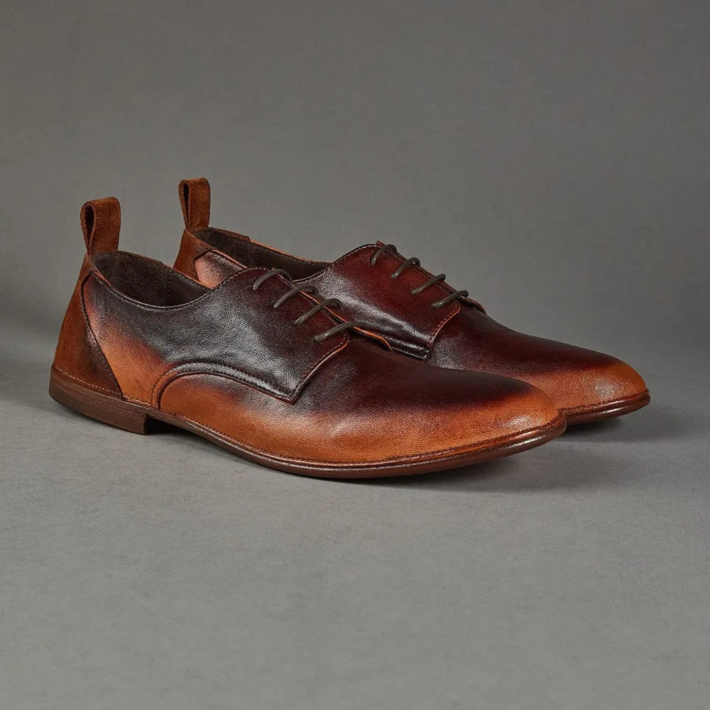 Brown Mens Derby Featuring A Washed And Brushed Buffalo Leather Upper. These Conflict For Interest Lace Up Derby Are Timeless And Feature A Robust Blake Rapid Construction.