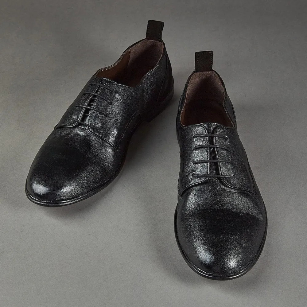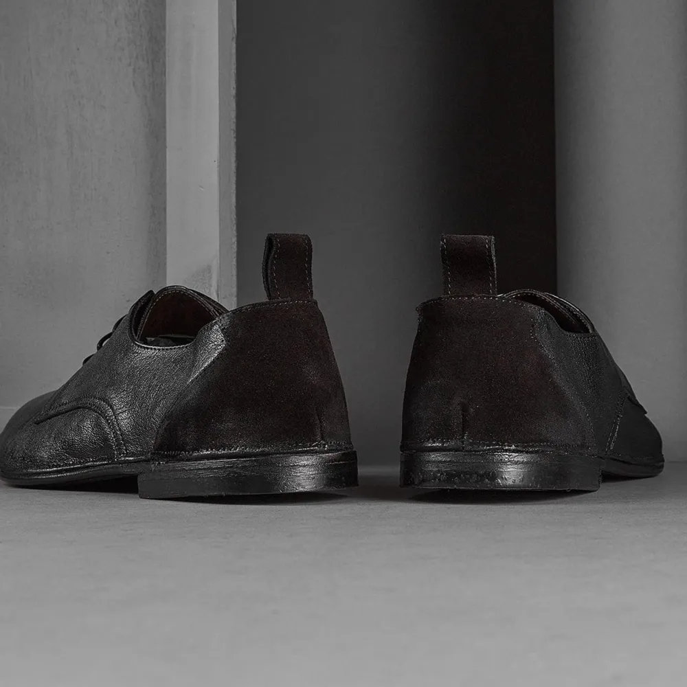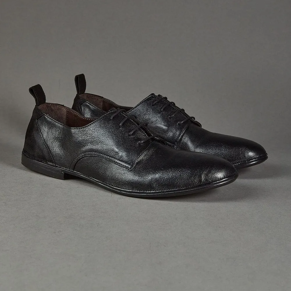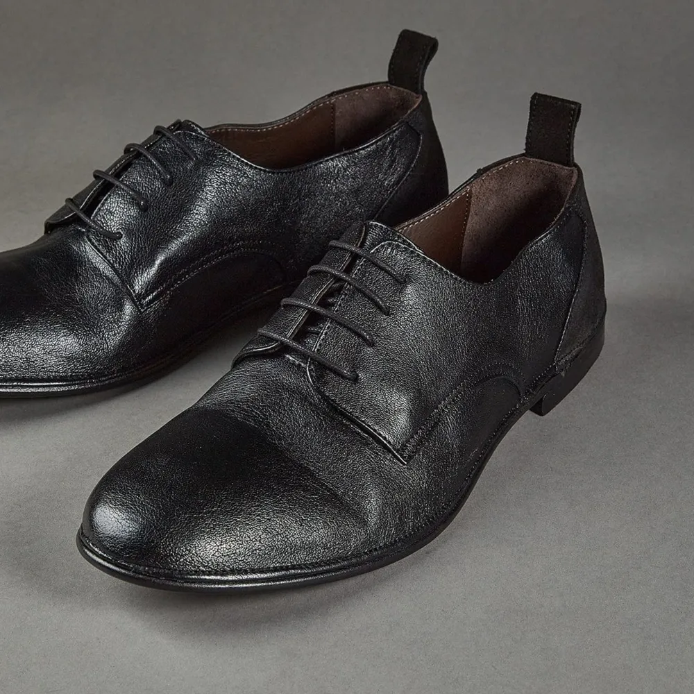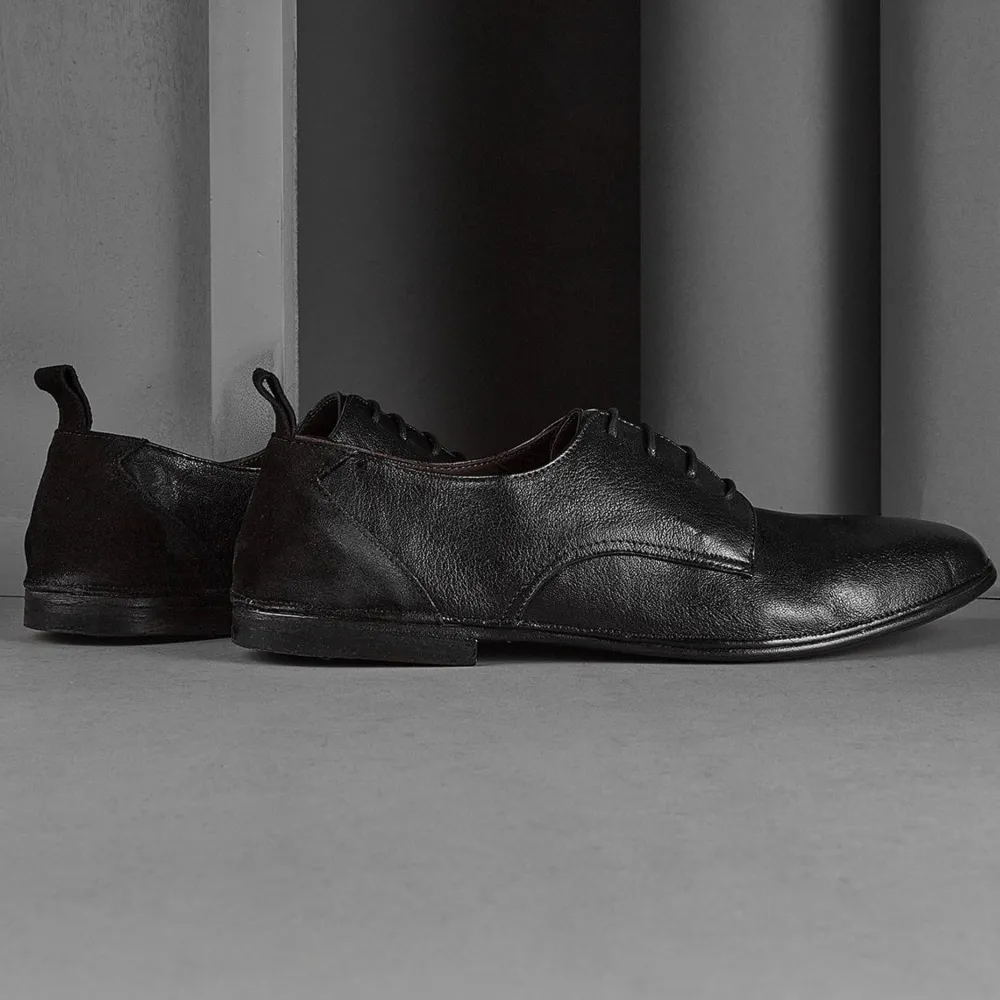 Black Mens Derby Featuring A Washed And Brushed Buffalo Leather Upper. These Conflict For Interest Lace Up Derby Are Timeless And Feature A Robust Blake Rapid Construction.