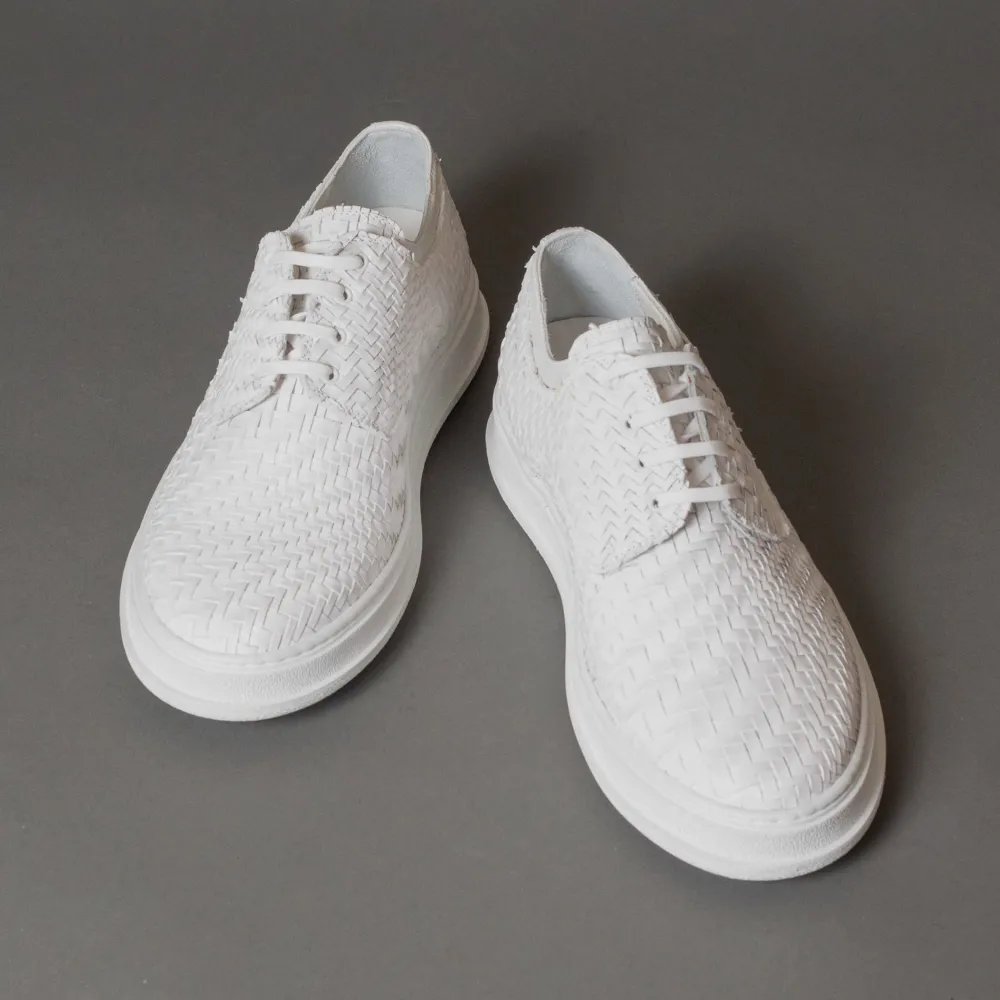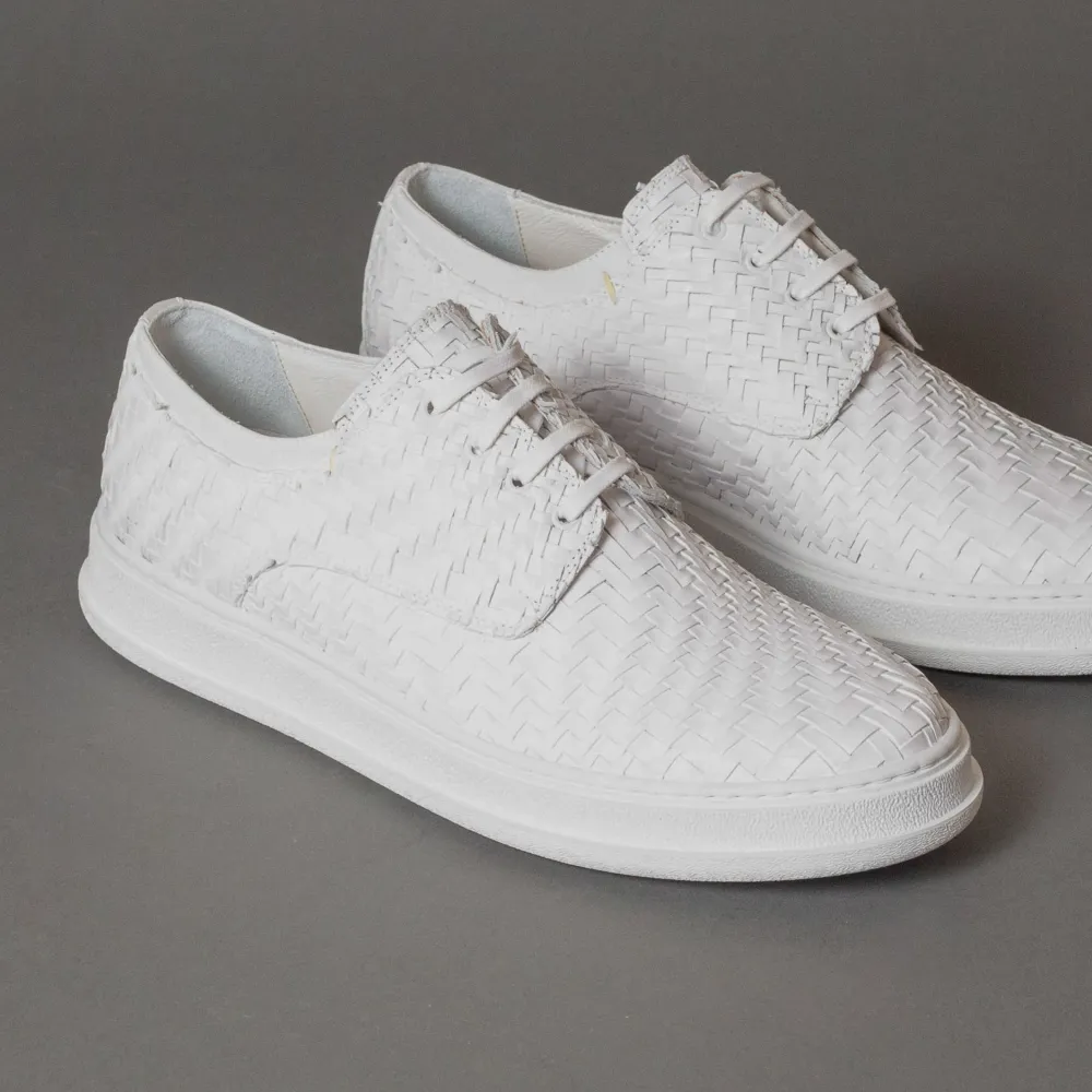 Men’S Lace Up From Conflict For Interest Platinum Featuring A Woven Detailed Upper. This Casual Shoe Has A Slight Yet Unique Twist And Is Suitable To Be Worn For Any Occasion From A Casual Pair Of Trousers To A Casual Chino.