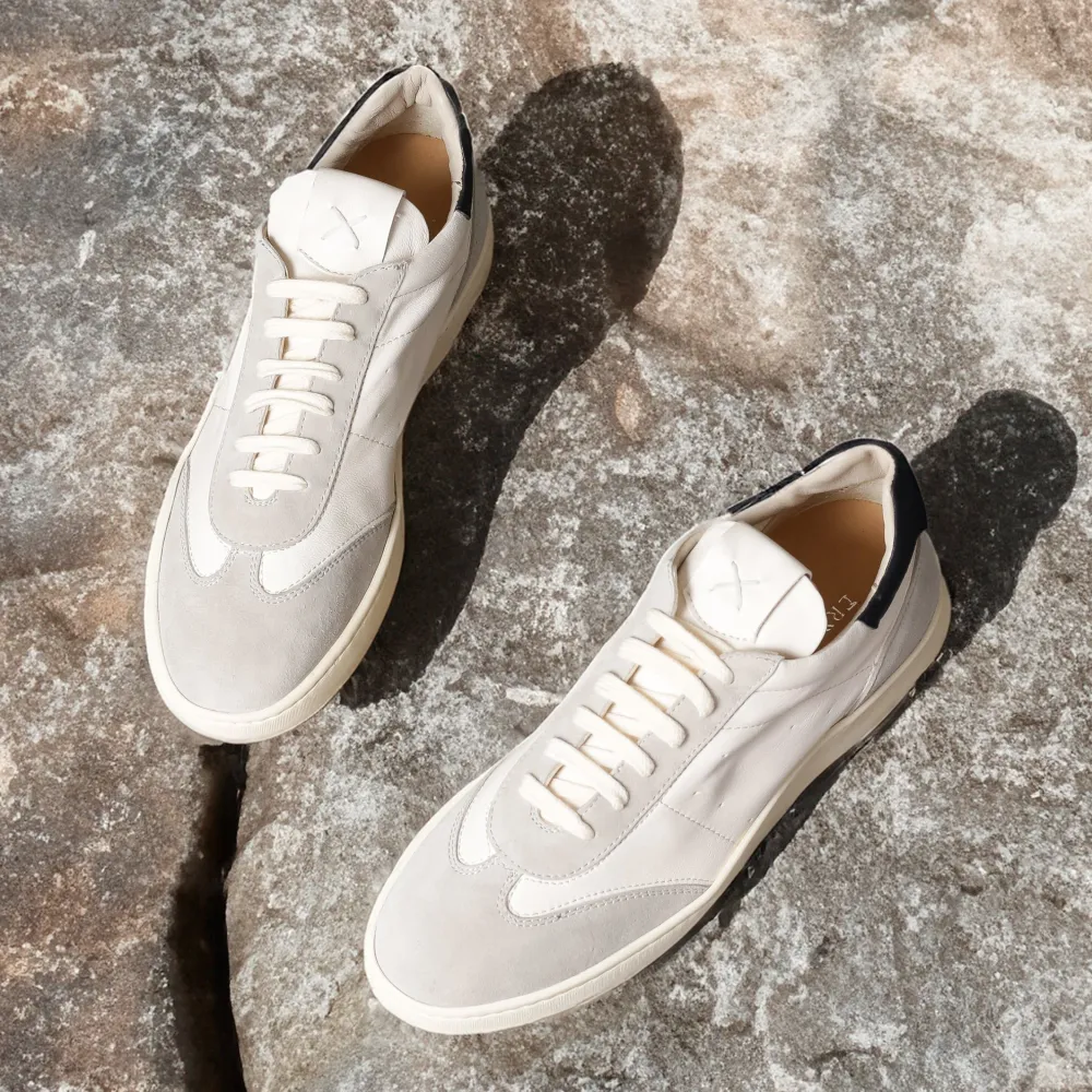 Mens Slim Line Limited Edition Trainer From Ernesto Dolain Featuring A Comfotrable Latex Sole. These Sneakers Are The Newest Instalment To The 124 Range. Pair Them Back With A Variety Of Coloured Chinos, Your Favourite Jeans And For The Fashionista A Deconstructed Suit. A Timeless Handcrafted Sneaker Made In Italy