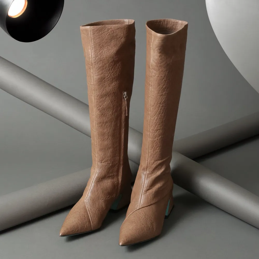 Women’S Tube/Zip Knee High Boot From Conflict For Interest, Featuring A Gathered Upper Detail. These Timeless Beauties Are Dip-Dyed Intensifying The Colour As Well As Making The Leather Extremely Soft.