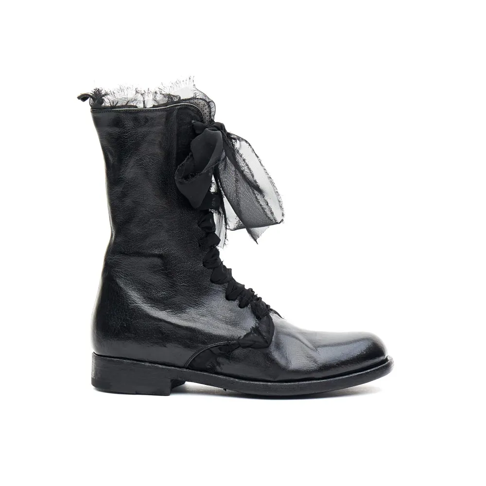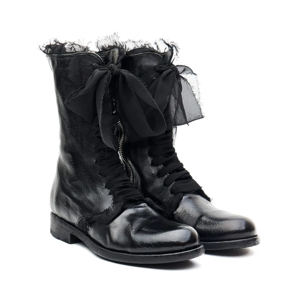 Limited Edition Women’S Lace Up Ankle Boot From Ink. Featuring A Textured Deer Hide Upper With A Contasting Satin Lace. A Signature Boot In This Season Collection. Select Your Size And They Will Be Handcrafted For You Within 10 To 12 Weeks