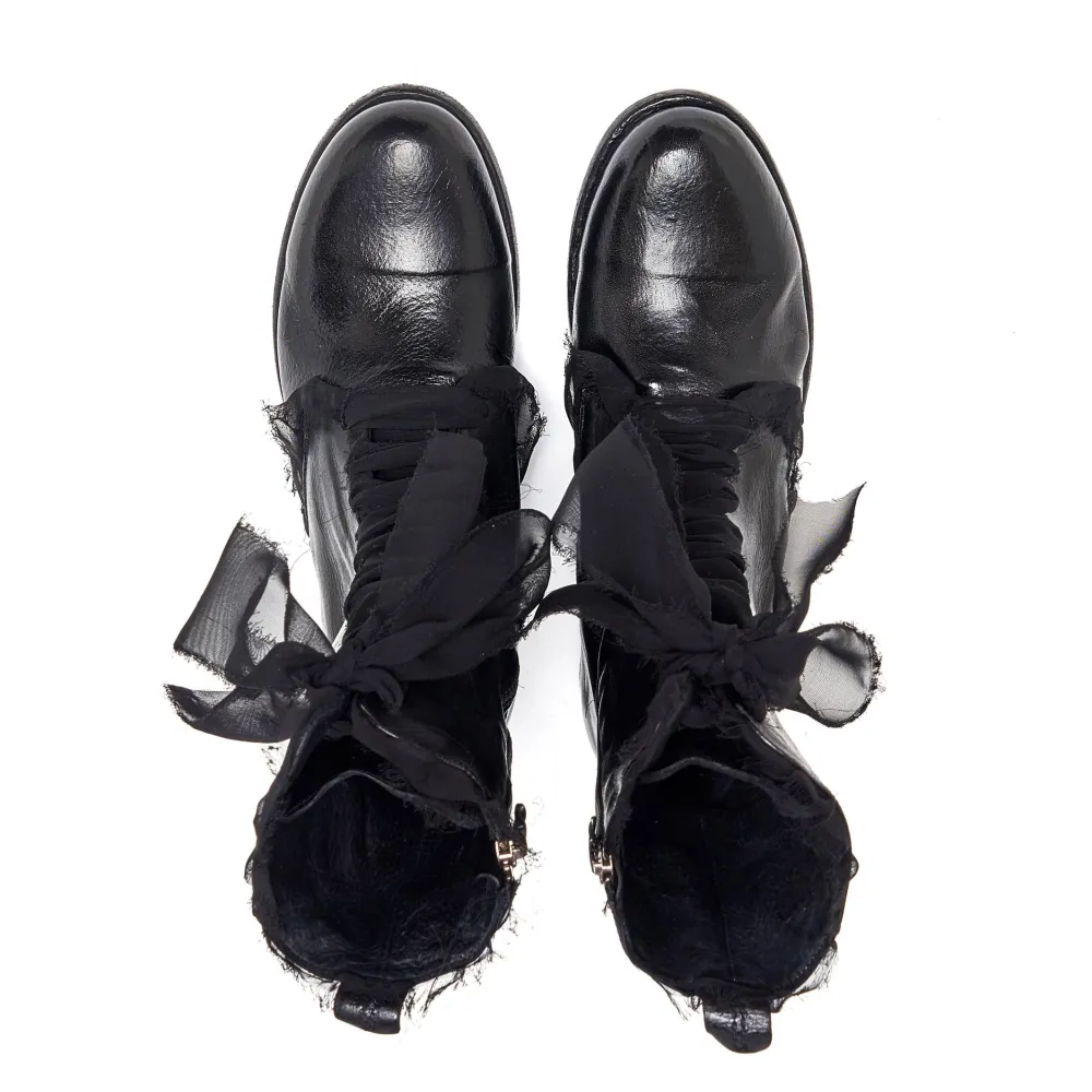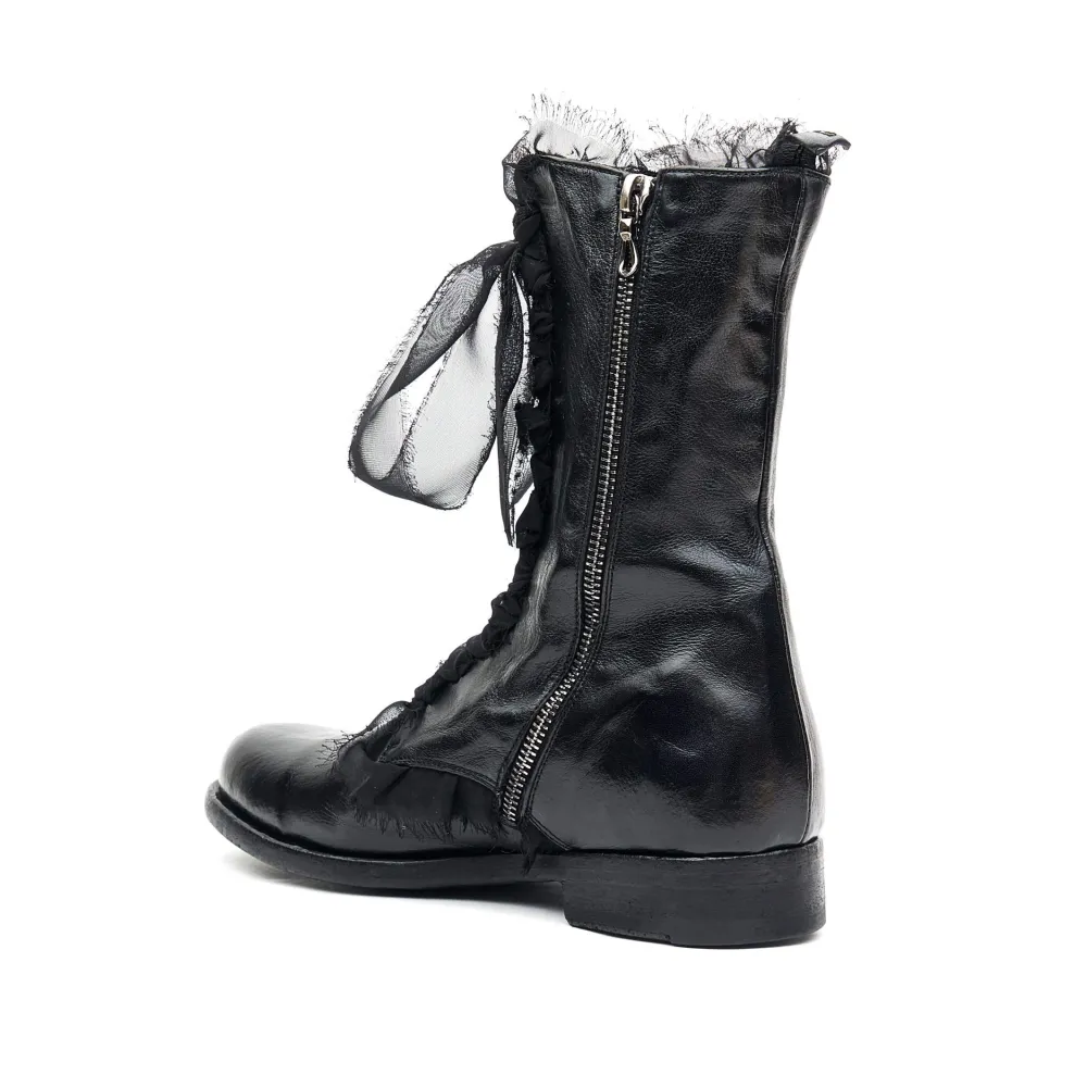 Limited Edition Women’S Lace Up Ankle Boot From Ink. Featuring A Textured Deer Hide Upper With A Contasting Satin Lace. A Signature Boot In This Season Collection. Select Your Size And They Will Be Handcrafted For You Within 10 To 12 Weeks