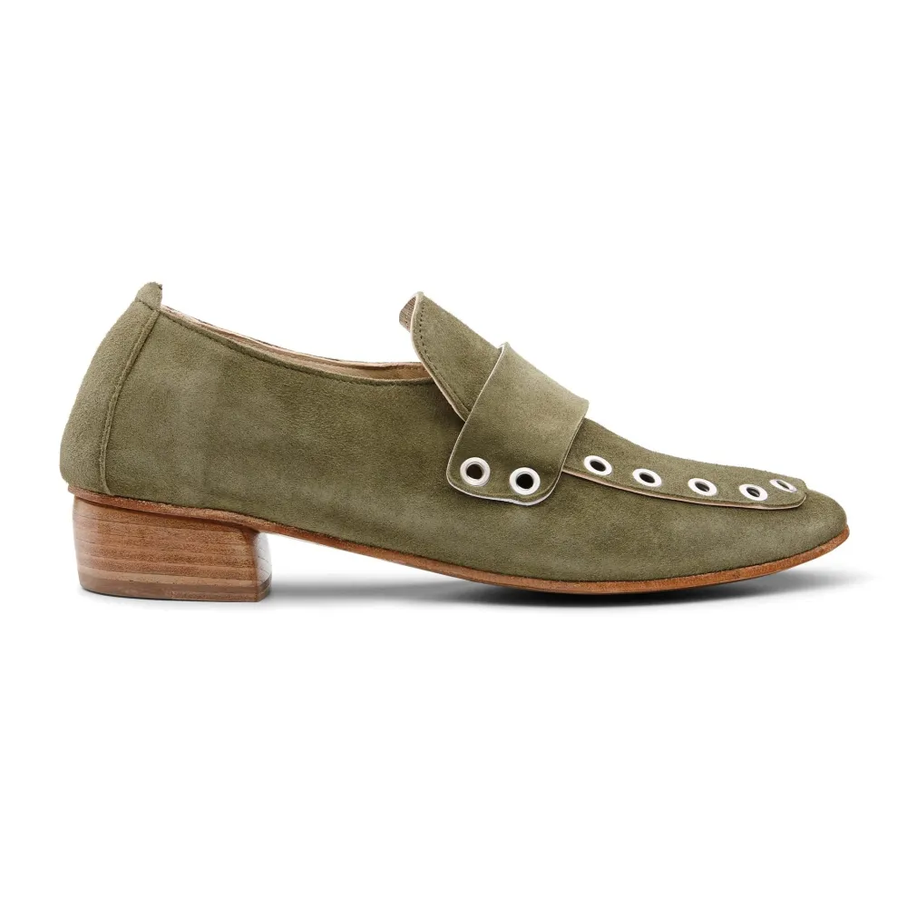 Green Women’S Loafer From Kudeta Featuring A Soft Premium Suede Leather Upper. A Signature Piece From Kudeta With An Extremely Comfortable Sachetto Construction Makes These Shoes Timeless.Ideal For Women Who Want To Be Comofrtable And Unique.