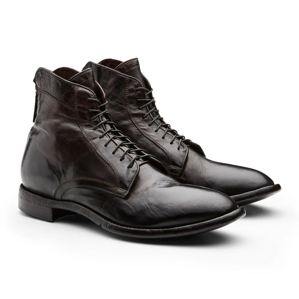 Made To Order Lace Up Ankle Boot Featuring A Dip Dyed And Washed Buffallo Leather Upper. These Soft And Subtle Leather Boots Are Timeless And Can Be Worn Through All Seasons.