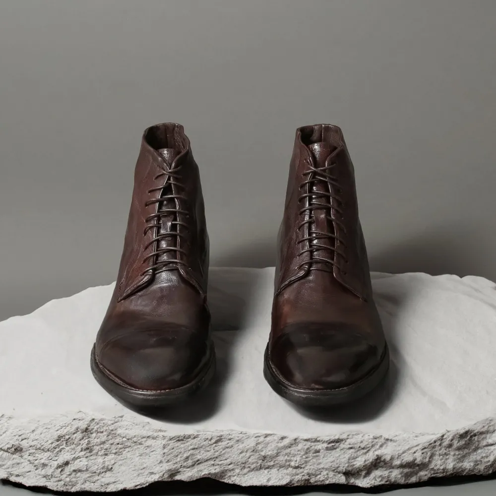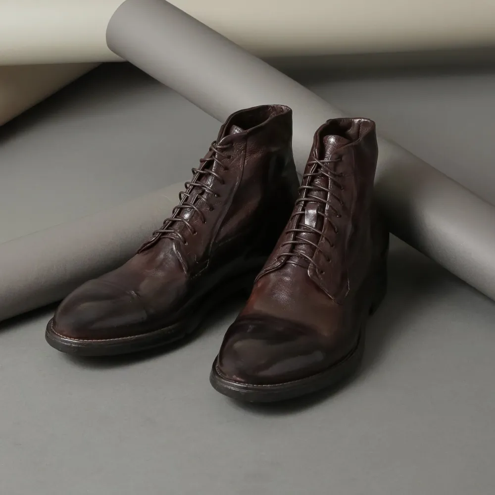 Lace Up Ankle Boot Featuring A Washed And Brushed Buffallo Leather Upper From Lemargo. These Soft And Subtle Leather Boots Are Timless And Can Be Worn Through All Seasons.