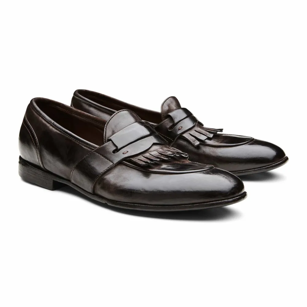 Slip On Loafer Featuring A Tassel Detail With A Beautifull Rich Deep Brown Hand Dyed Finish.