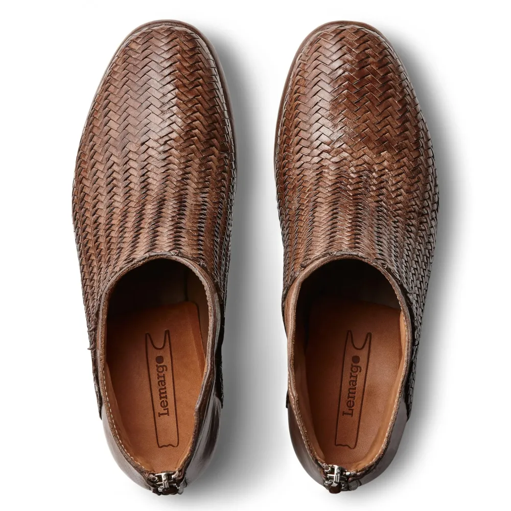 These Beautiful Handwoven Boots Are Finished With A Washed And Brushed Buffallo Leather Upper Making Them Extremley Soft And Comfortable. A Notebale Signature Finish For A Lemargo Shoes Is The Exposed Shank Which Adds To The Hand Made Finsih.