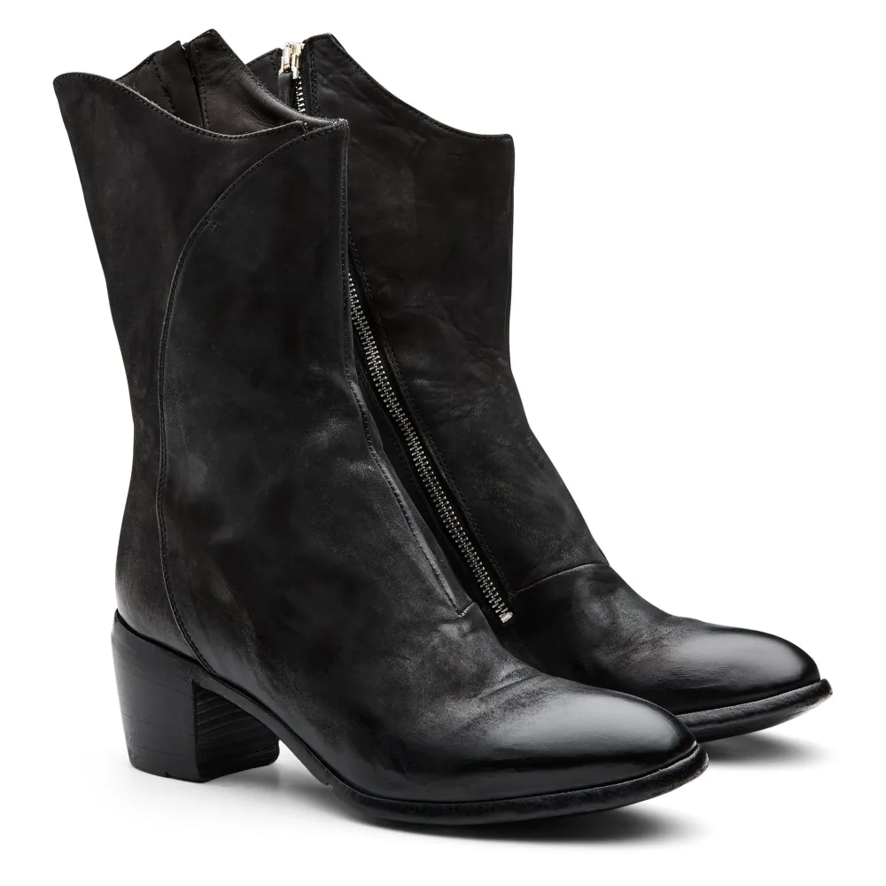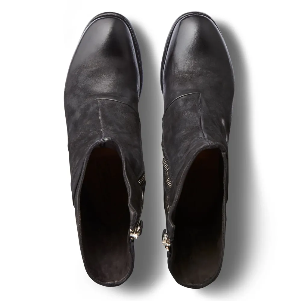 These Beautiful Mid Height Black Boots Are Timeless. They Are Finished With A Washed And Brushed Reverse Buffallo Leather Upper Making Them Extremley Soft And Comfortable. A Notebale Signature Finish For A Lemargo Shoes Is The Exposed Shank Which Adds To The Hand Made Finish.
