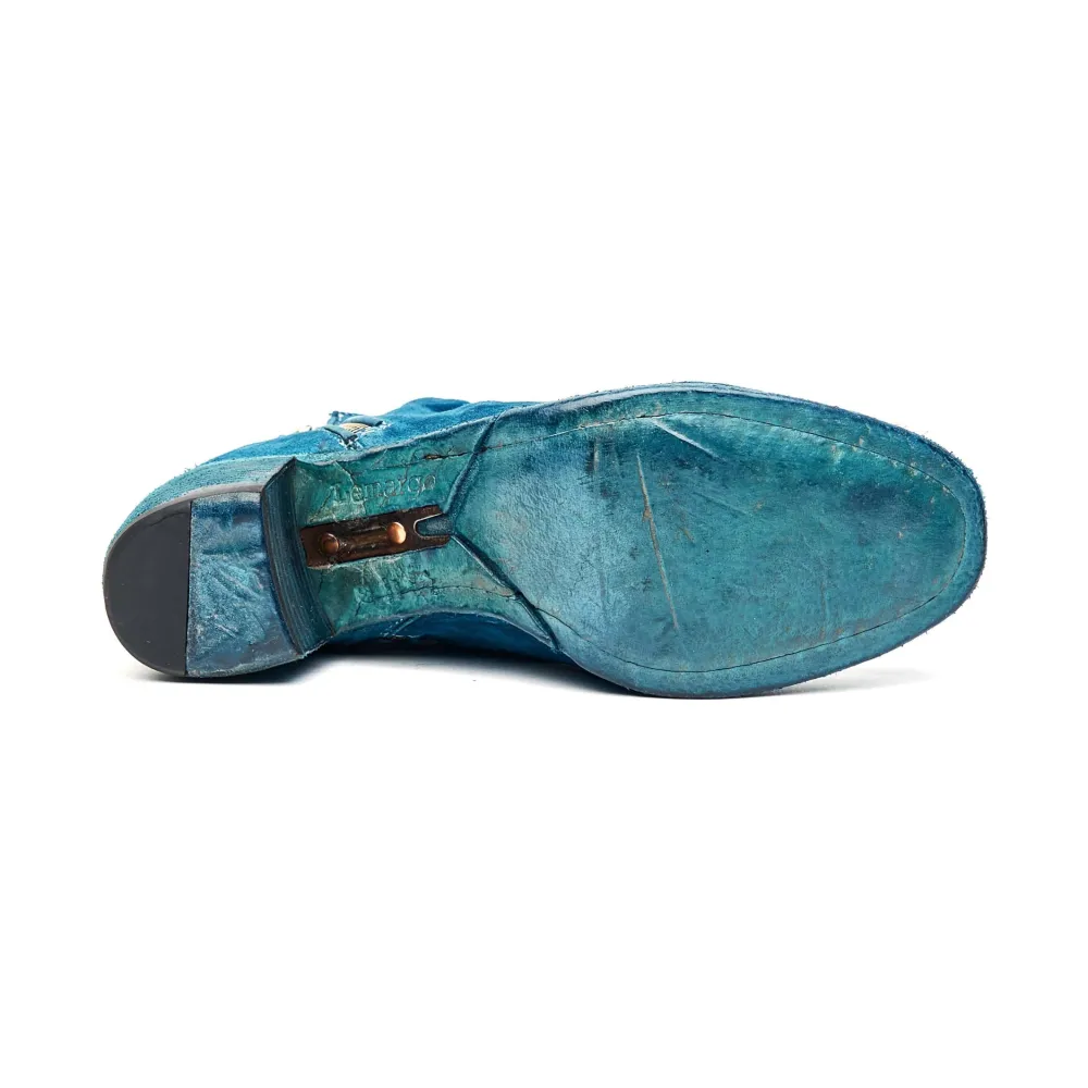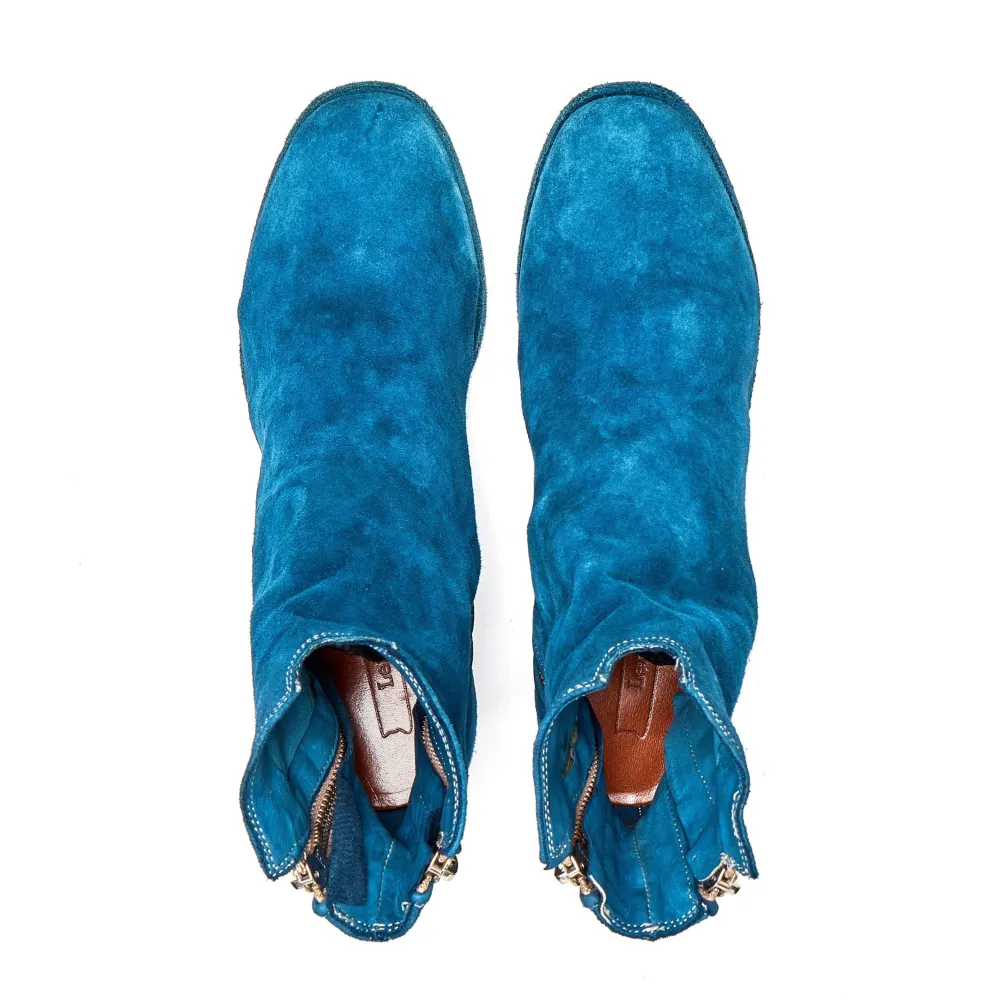 Women’S Blue Double Zip Ankle Boot From Lemargo, Featuring A Gathered Upper Detail. These Timeless Beauties Are Dip-Dyed Intensifying The Colour As Well As Making The Leather Extremely Soft. A Notable Signature Finish For A Lemargo Shoe Is The Exposed Shank Signifying The Traditional Craftsmanship Used On Their Footwear. Select Your Size And They Will Be Handcrafted For You Within 8 To 10 Weeks.