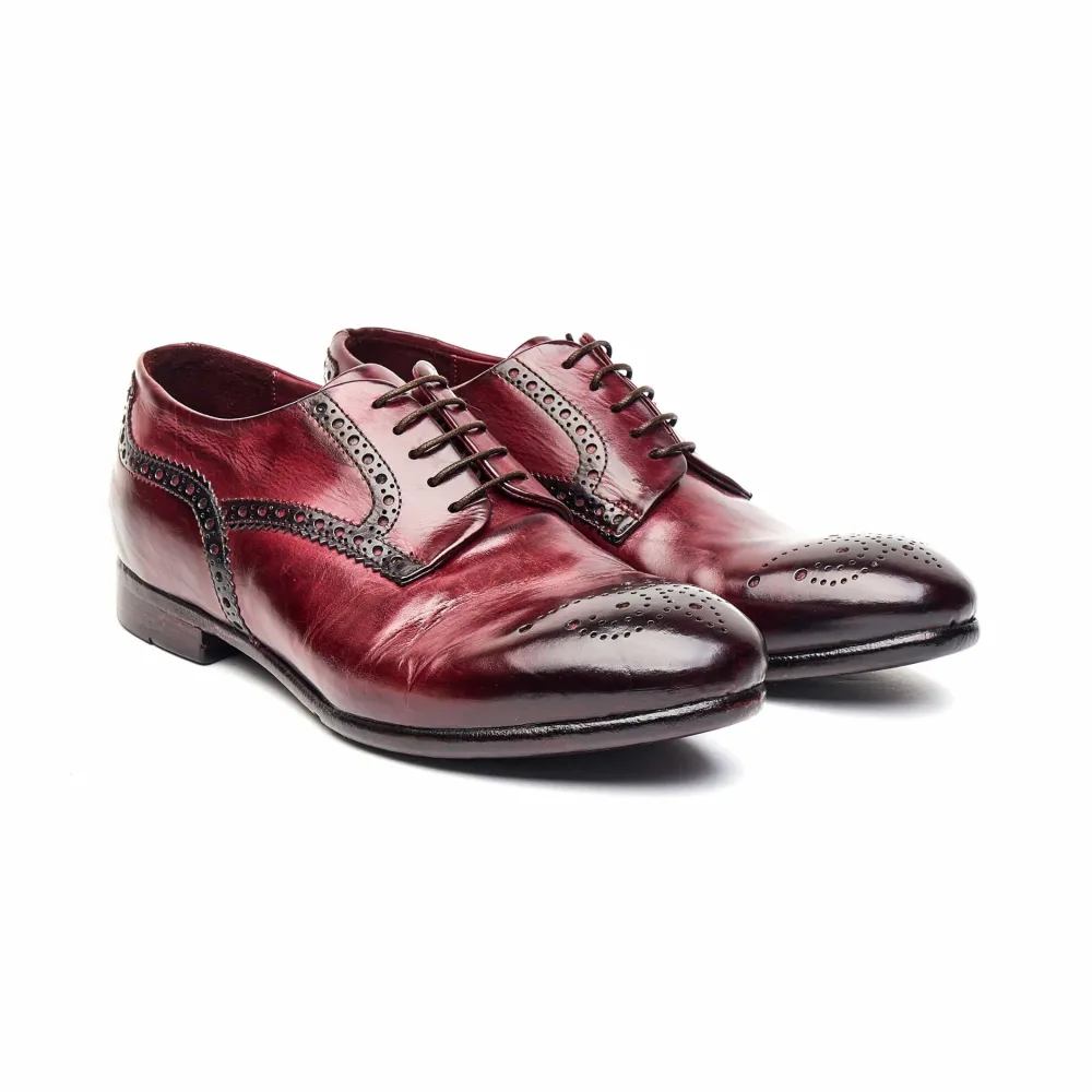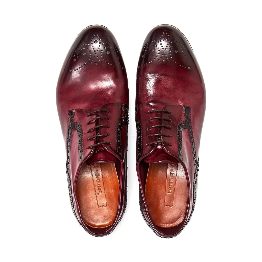 Beautiful Rich Burgundy Derby Featuring A Punched Detailed Almond Toe. These Lemargo Are A Staple Shoe And Not To Be Missed Out On.