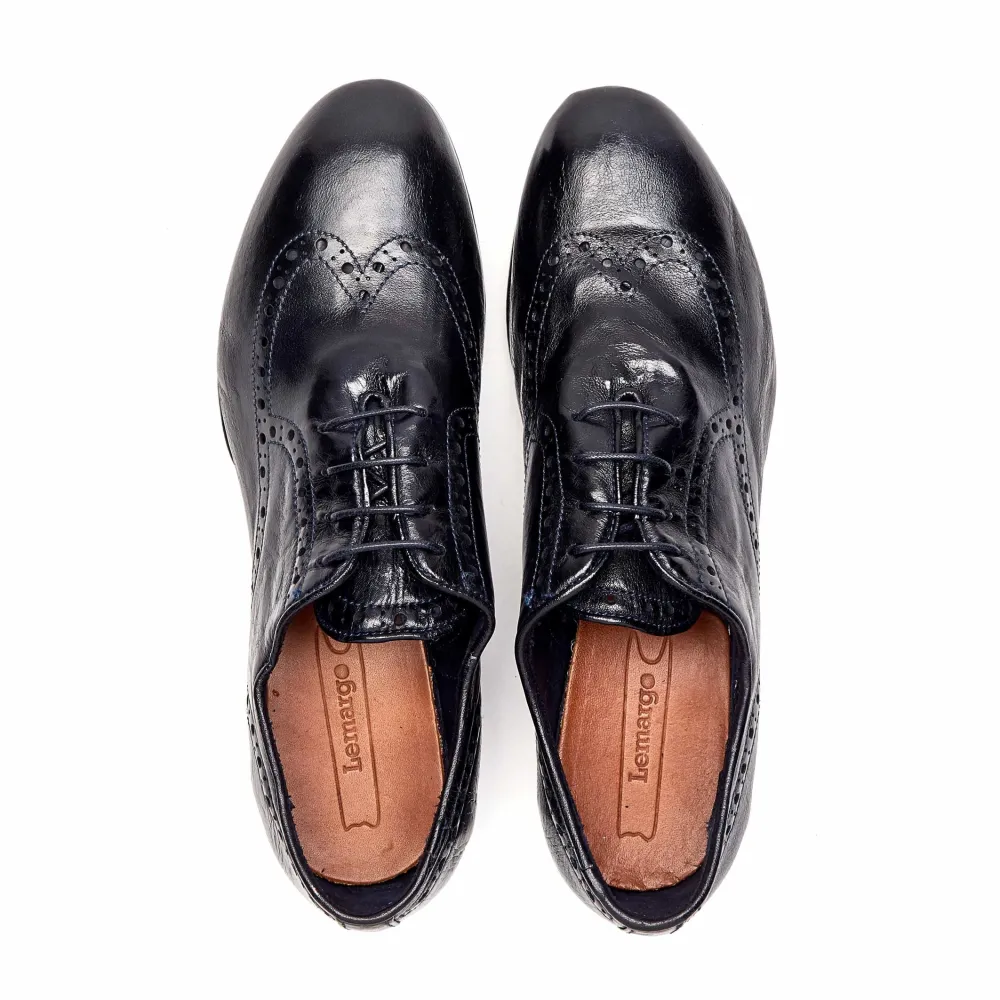 Womens Handcrafted Oxford From Lemargo, Featuring A Punched Wingtip Detail On The Upper And Dip Dyed Finish.