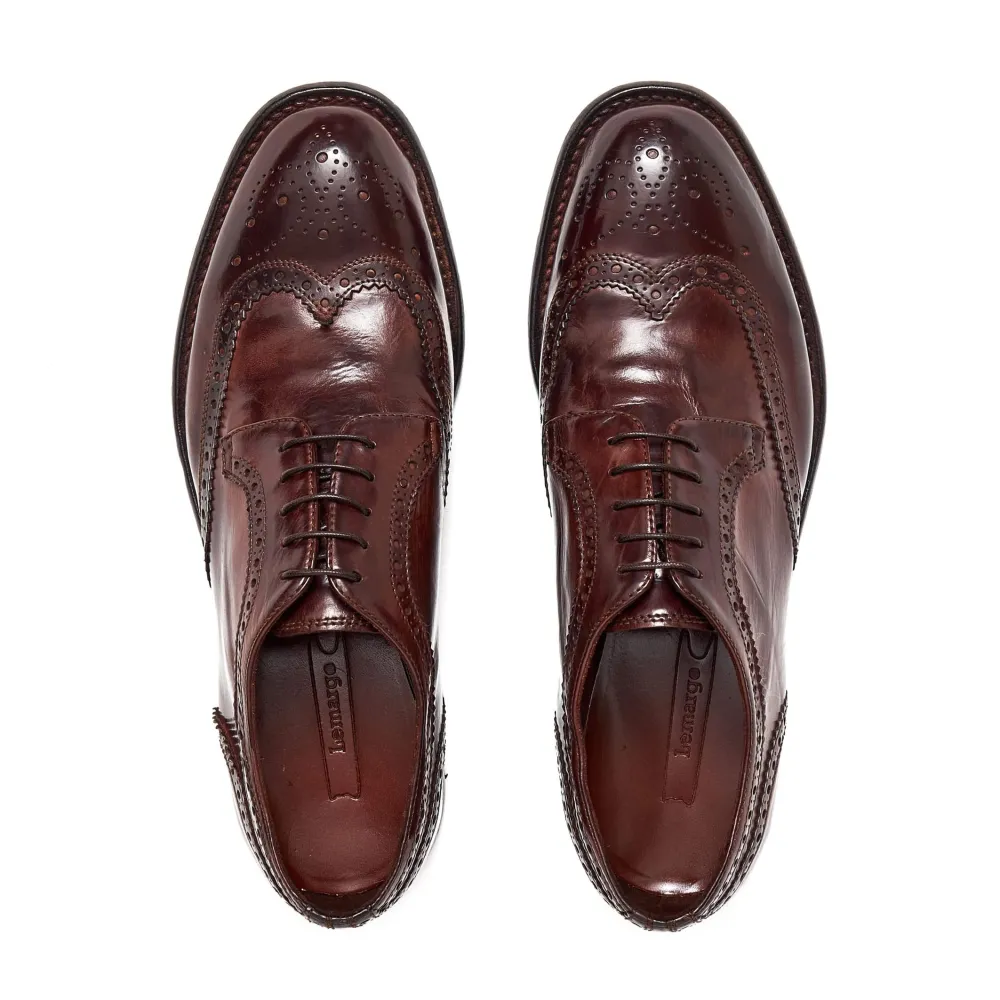 Tan Lace-Up Derby From Lemargo Featuring A Brogue Detailed. The Sleek New Innovative Last Give This Style A Contemporary Edge. The Soft And Subtle Handcrafted Shoes Are Timeless To Be Worn Through All Seasons. The Exposed Shank On The Sole Is A Signature Detail Of All Lemargo Footwear.