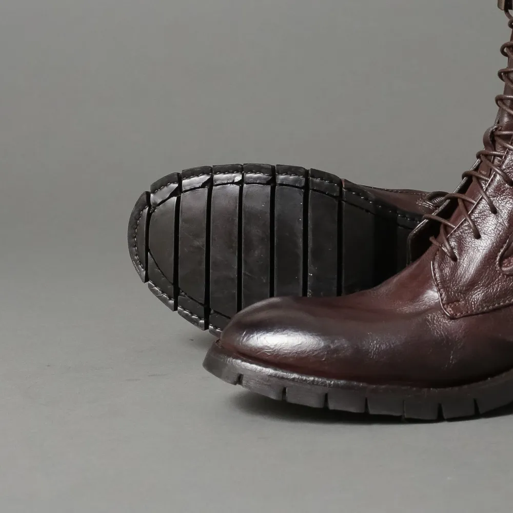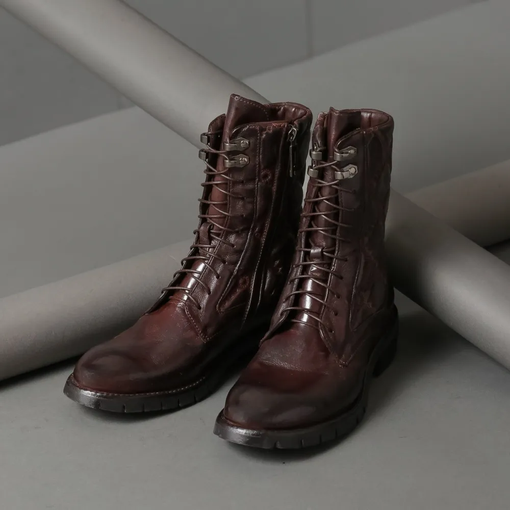 Women’S Limited Edition Combat Boot From Lemargo Featuring A Twelve Eyeletted Lace-Up With A Zip Closure. The Exposed Shank On The Sole Is A Signature Detail Of All Lemargo Footwear.