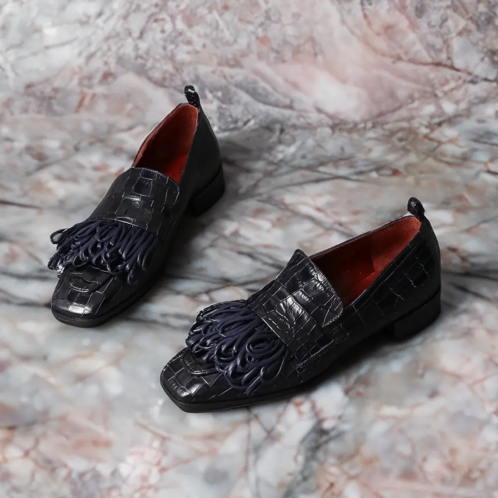 Handcrafted Women’S Flat From Lorena Paggi Featuring A Soft Leather Upper With A Croc Detailing Sitting On An Extremely Comfortable Sacchetto Construction. A Signature Piece Of The New Season Collection.