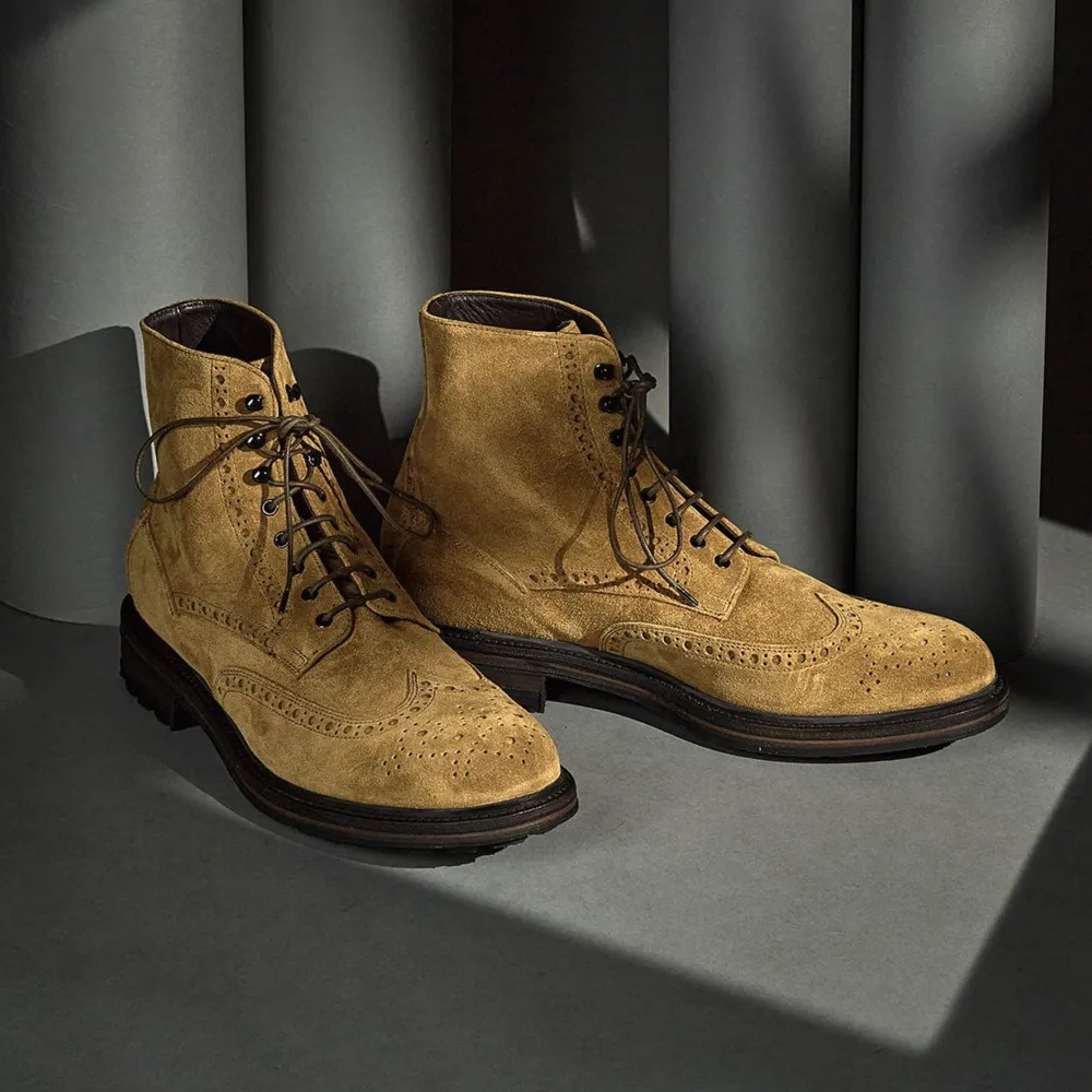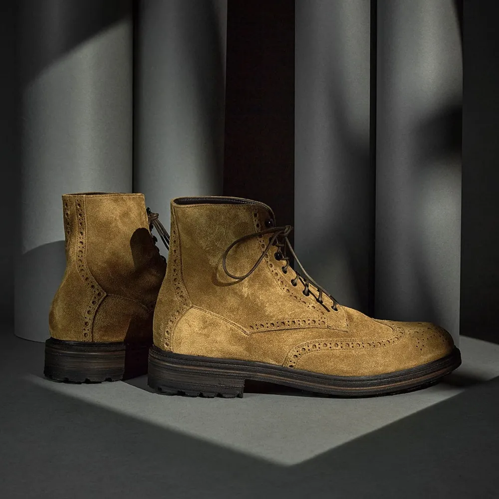 Men’S Ankle Boot From Pantanetti Featuring A Beautiful Soft Nappa With A Brouge Detailed Upper. These Beautiful Handcrafted Shoes Are A Must Have For This Winter.
