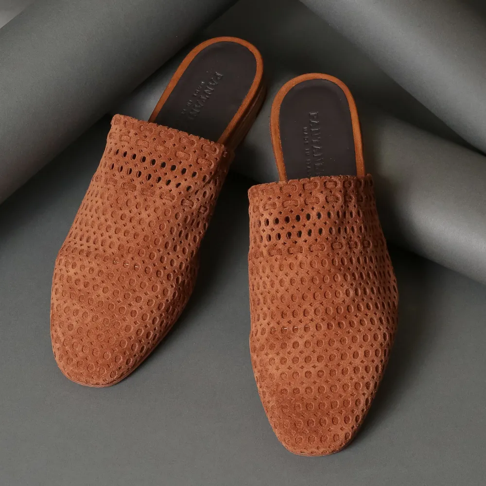 Womens Signature Mule From Pantanetti. A Beautiful Punched Detailed Upper Sitting On A Fuller Leather Sole. Stunning Mule That Will A Sophisticted Elegance To Any Spring Summer Outfit.