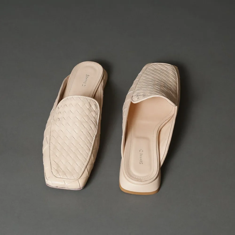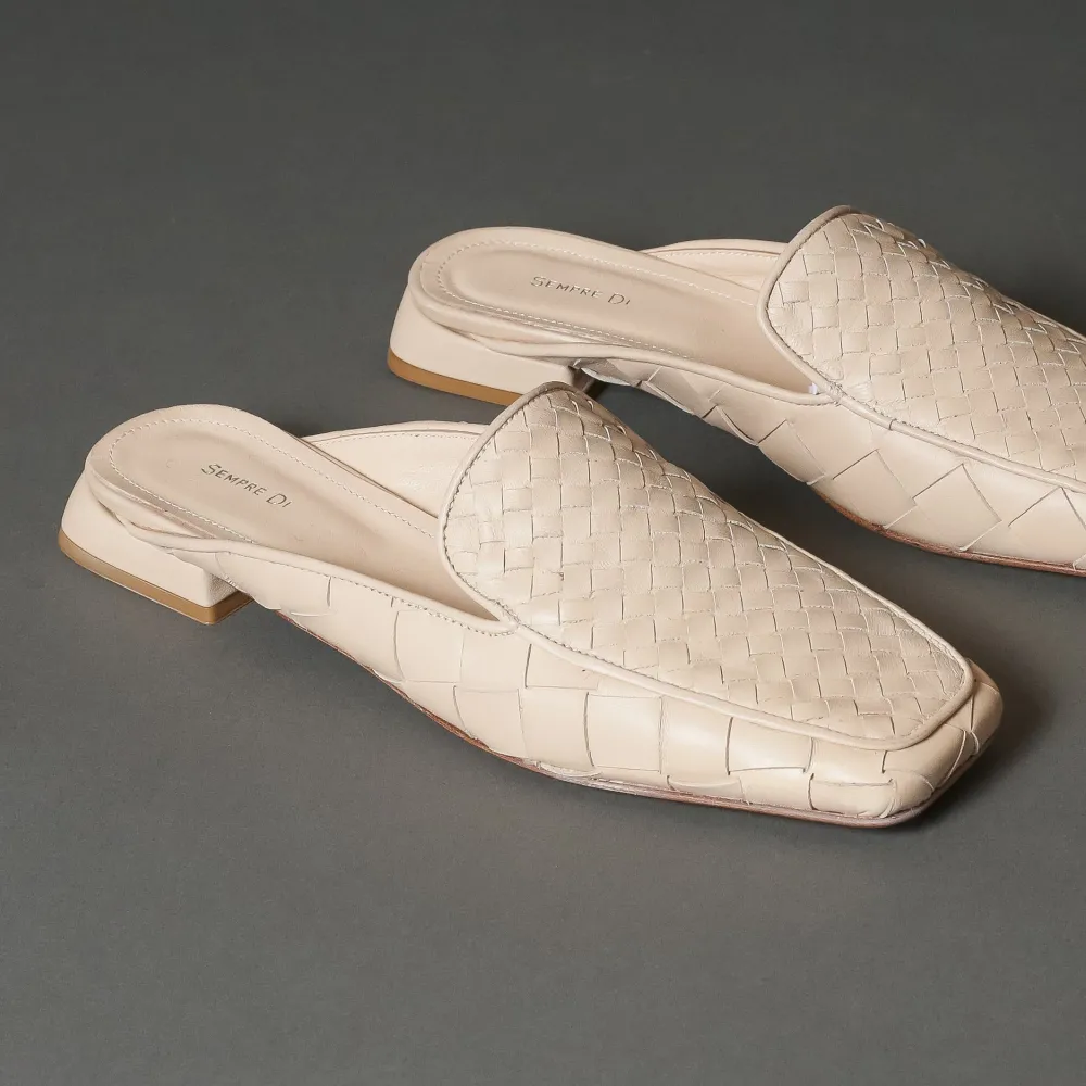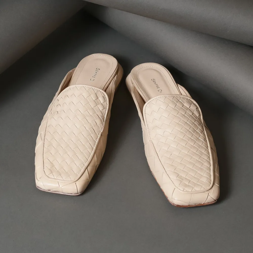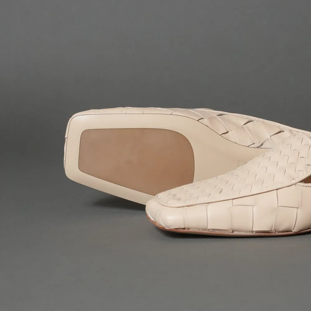 Our Easy-To-Wear Mule Fusing Minimalist Precision With A Preppy Retro Spirit. Done In A Stunning Nude Intrecciato Leather, Its Effortless Silhouette Balances A Low Stack Heel With An Extremely Comfortable Sacchetto Construction. A Timeless Signature Mule To Be Worn All Year Round.