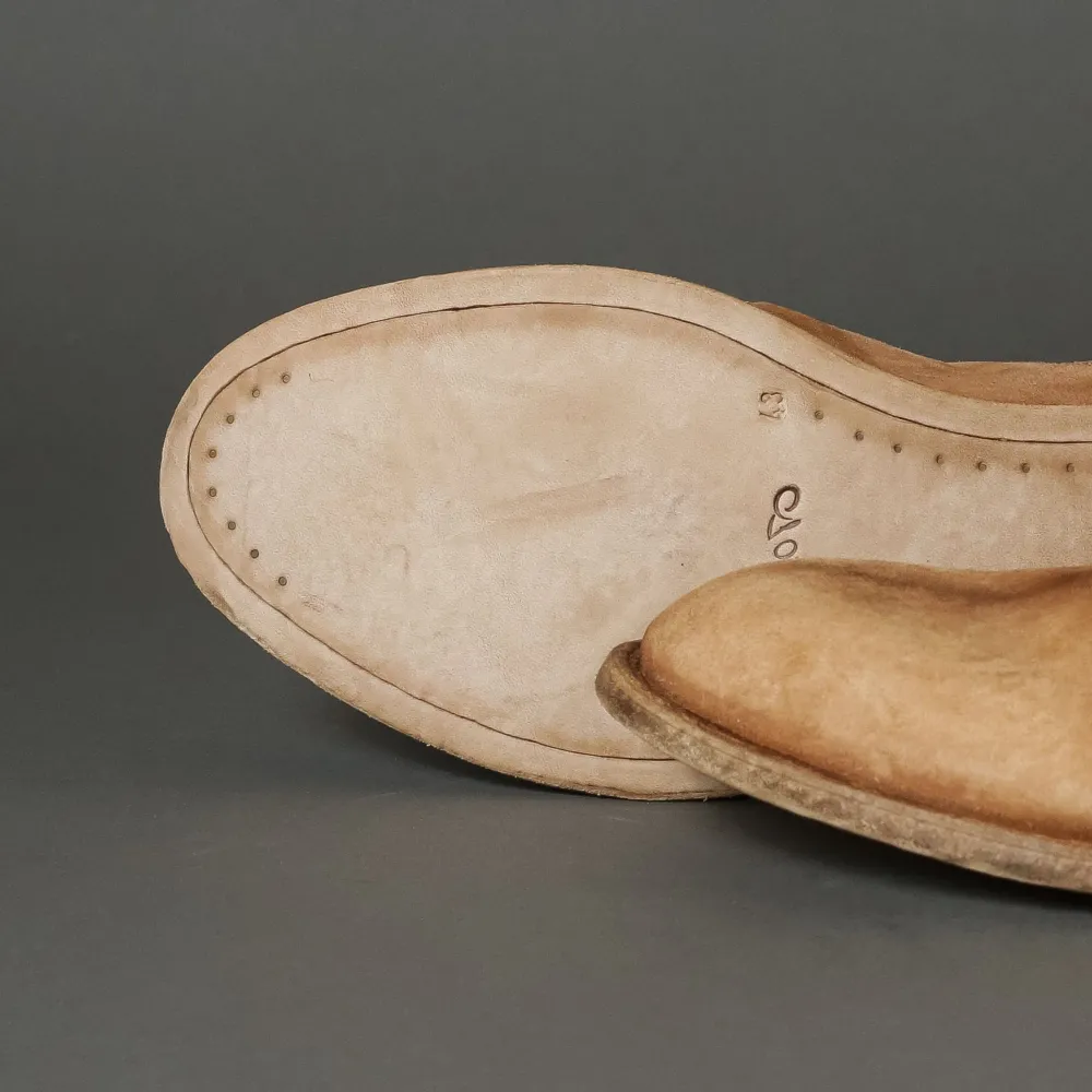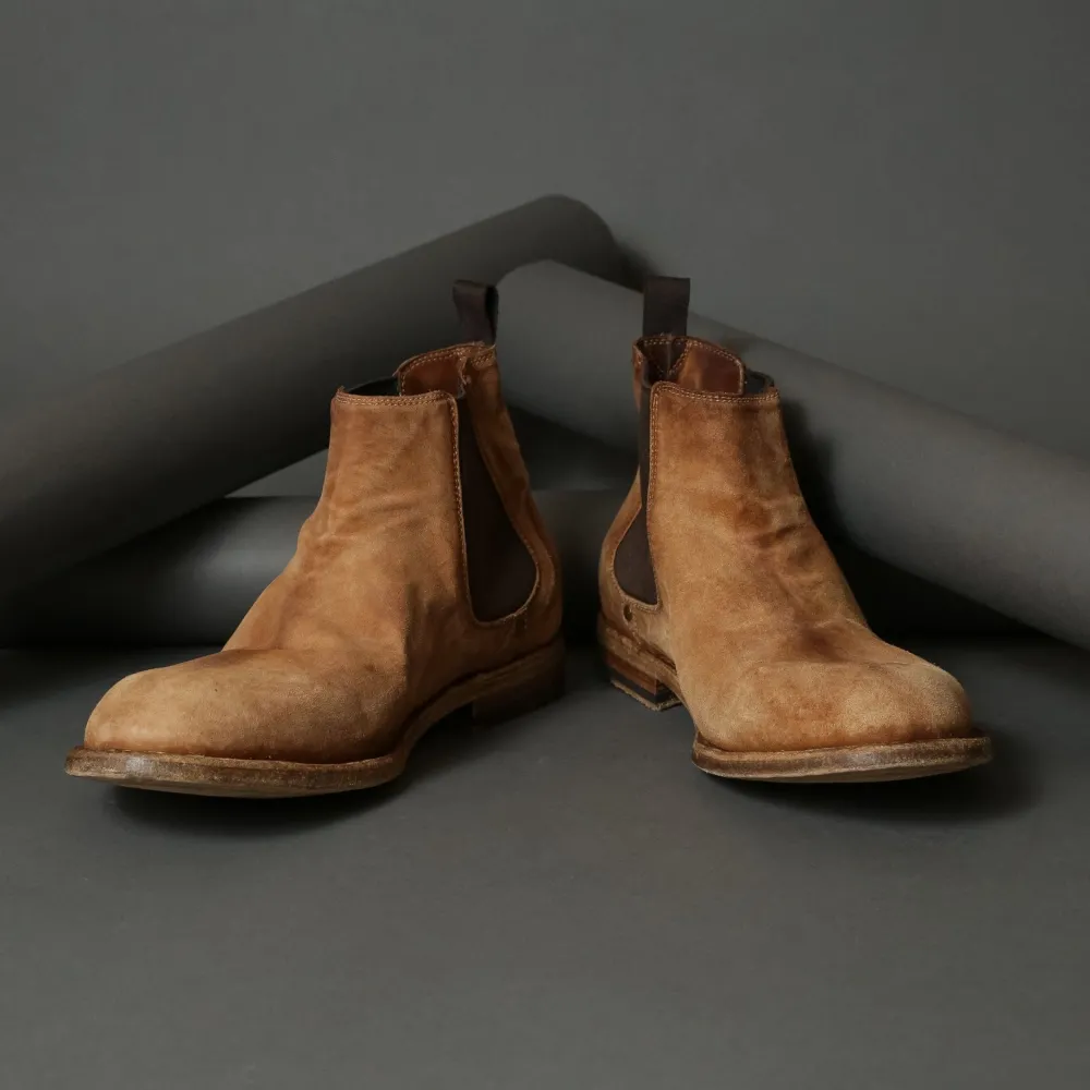 Limited Edition Chelsea Boot From Shoto Edited By 124.These Boots Feature A Contrasting Object Dyed Hand Finish. A Special Treatment, Using Hot Wax And Iron, Gives The Shoes A Burnished Look. The Shoes Are Then Washed And Left To Dry Naturally. They Are Finished With A Blake Rapid Construction Under The Sole And The Insole, Making Them More Resistant And Very Comfortable.