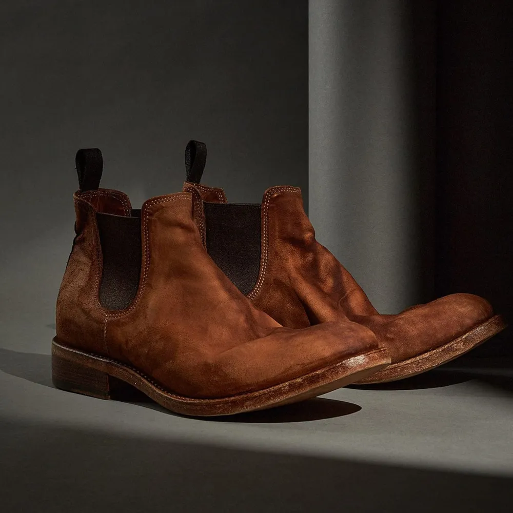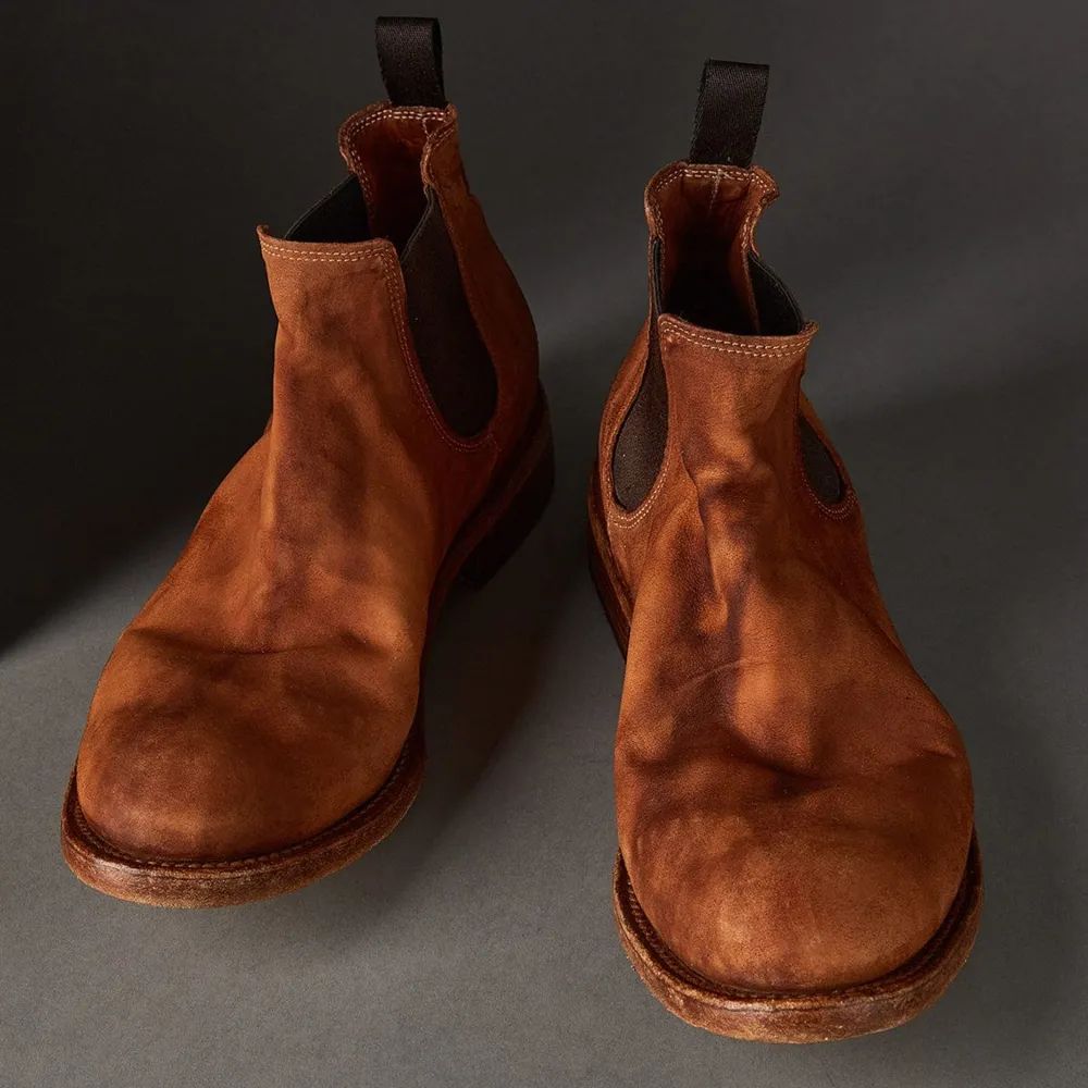 Limited Edition Chelsea Boot From Shoto Edited By 124.These Boots Feature A Contrasting Object Dyed Hand Finish. A Special Treatment, Using Hot Wax And Iron, Gives The Shoes A Burnished Look. The Shoes Are Then Washed And Left To Dry Naturally. They Are Finished With A Blake Rapid Construction Under The Sole And The Insole, Making Them More Resistant And Very Comfortable.