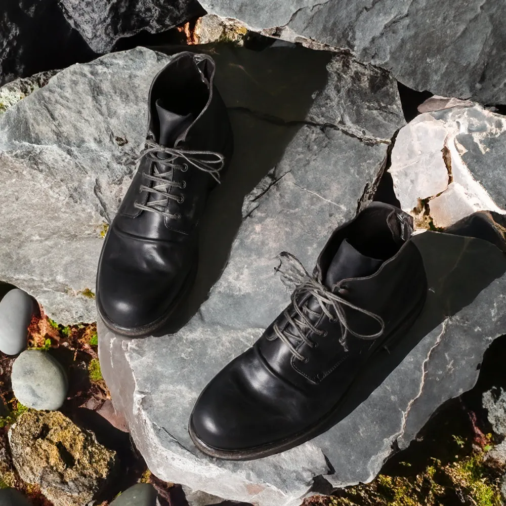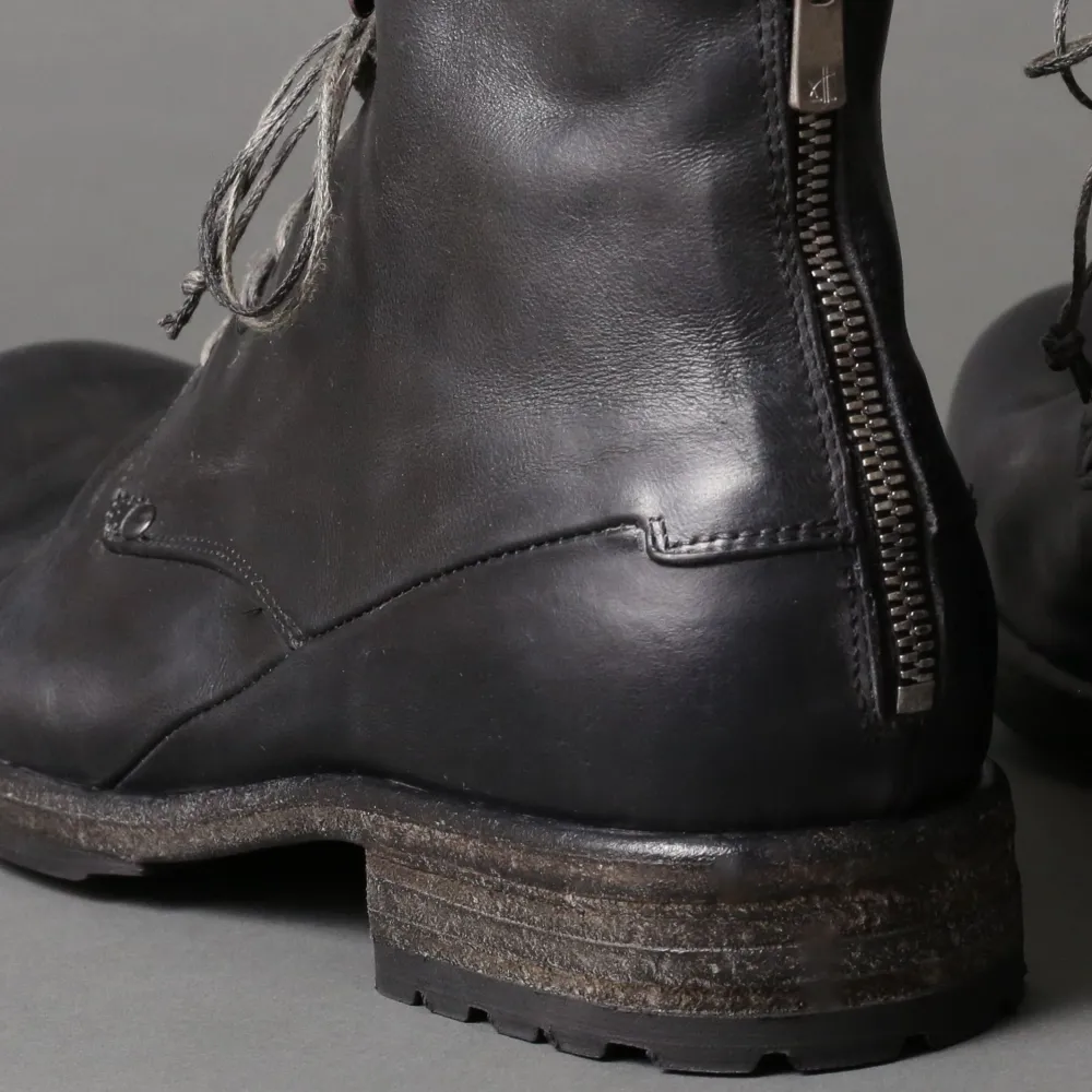 Limited Edition Lace Up Ankle Boot From Artisan Makers Shoto, Featuring A Beautiful Aged Unique Detailed Finish. Sitting On A Double Rapid Blake Contruction Making These Boots Comfortable And Durable. Pair Back Your Way With Your Favourite Apparel.
