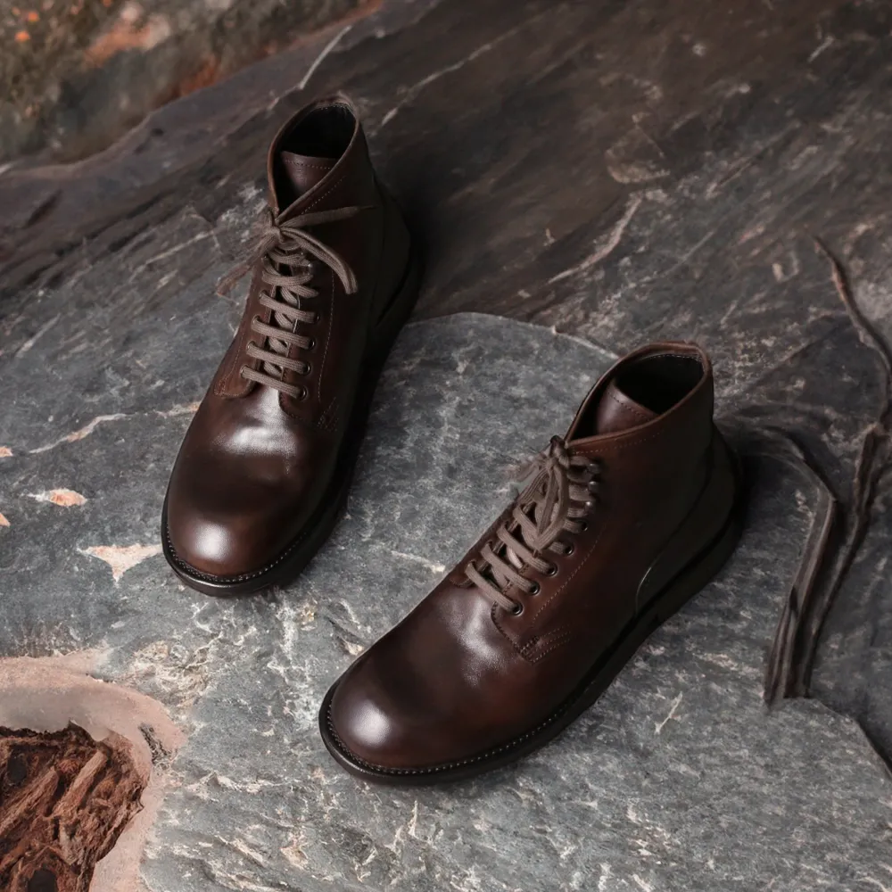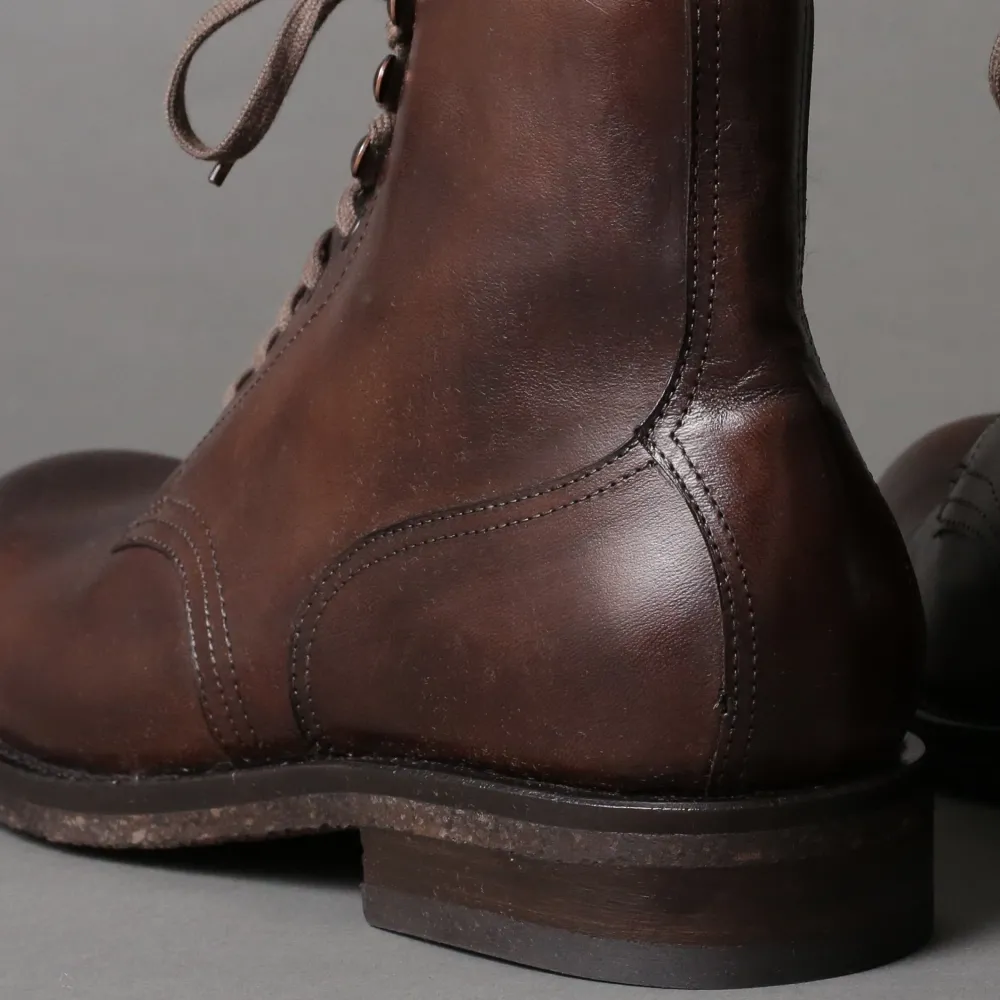Limited Edition Lace Up Ankle Boot From Artisan Makers Shoto, Featuring A Beautiful Aged Unique Detailed Finish. Sitting On A Double Rapid Blake Contruction Making These Boots Comfortable And Durable. Pair Back Your Way With Your Favourite Apparel.