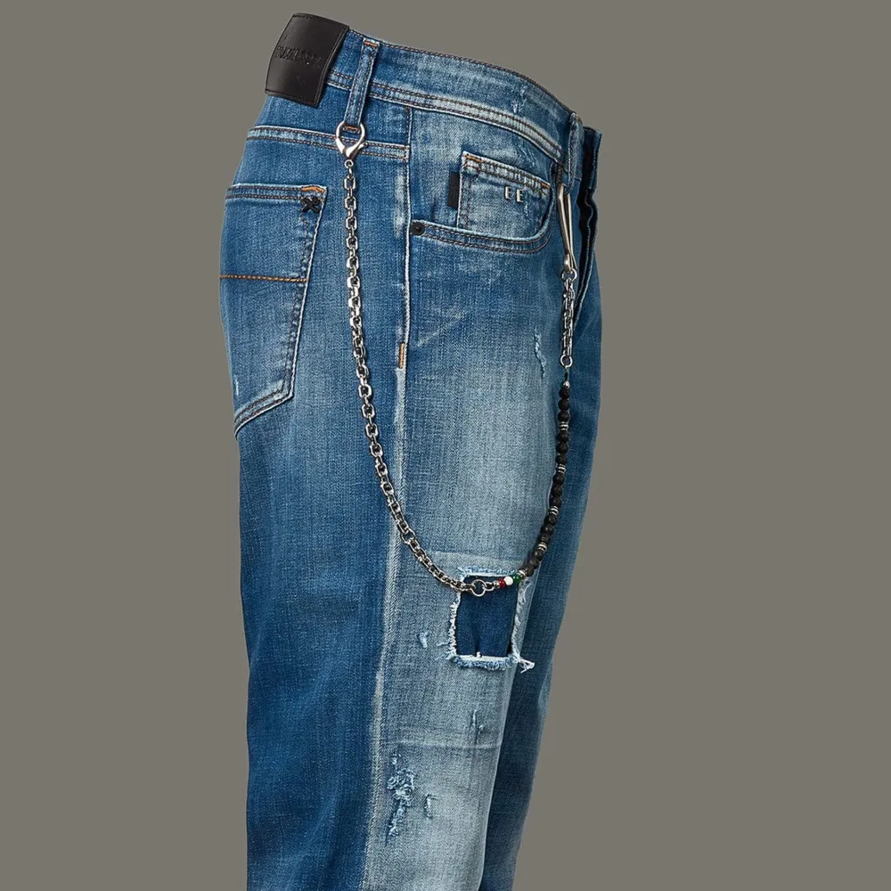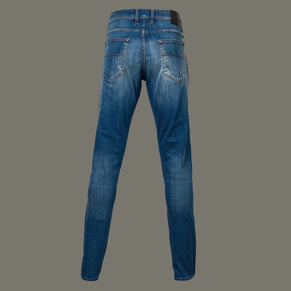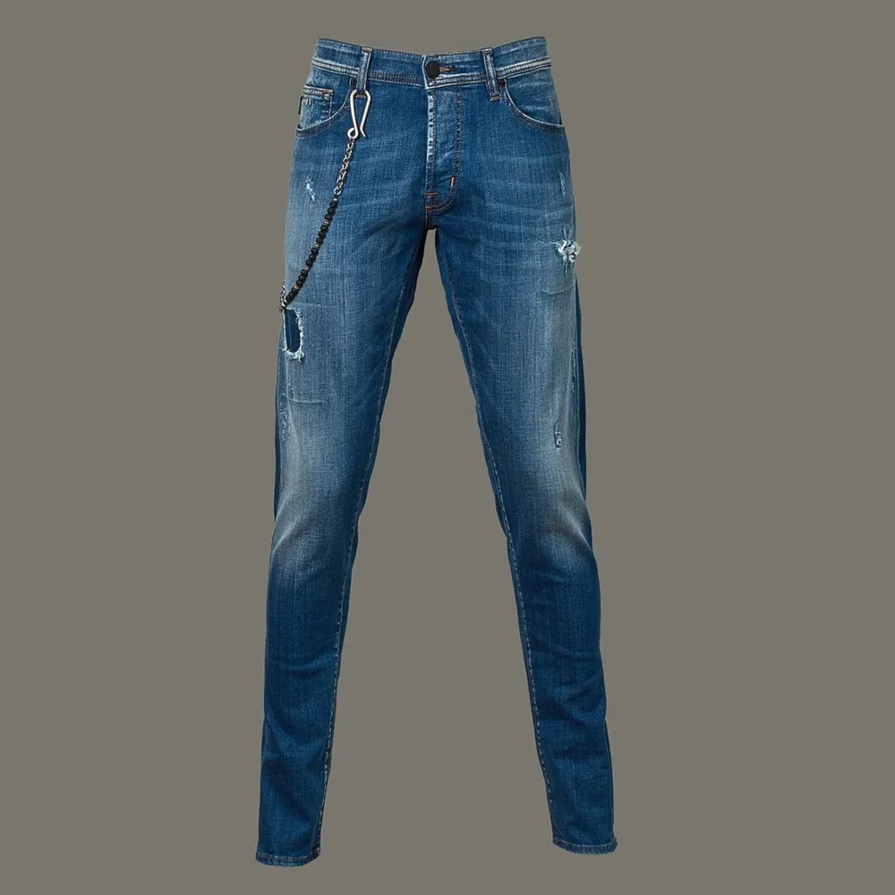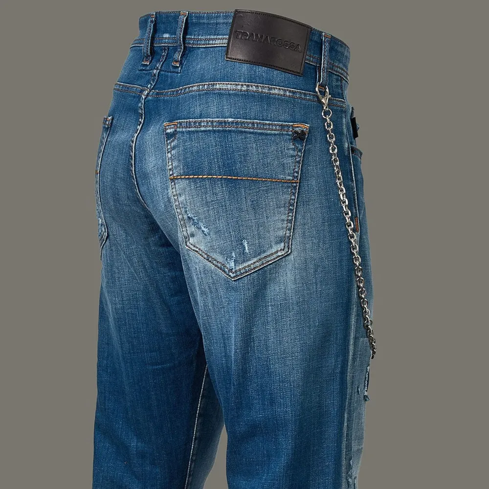 Men’S Blue Ripped Jean From Tramarossa Featuring Comfortable Stretch Selvage Denim. The Brand Was Born From A Collabroation With One Of The World’S Innovative Denim Manufactures.